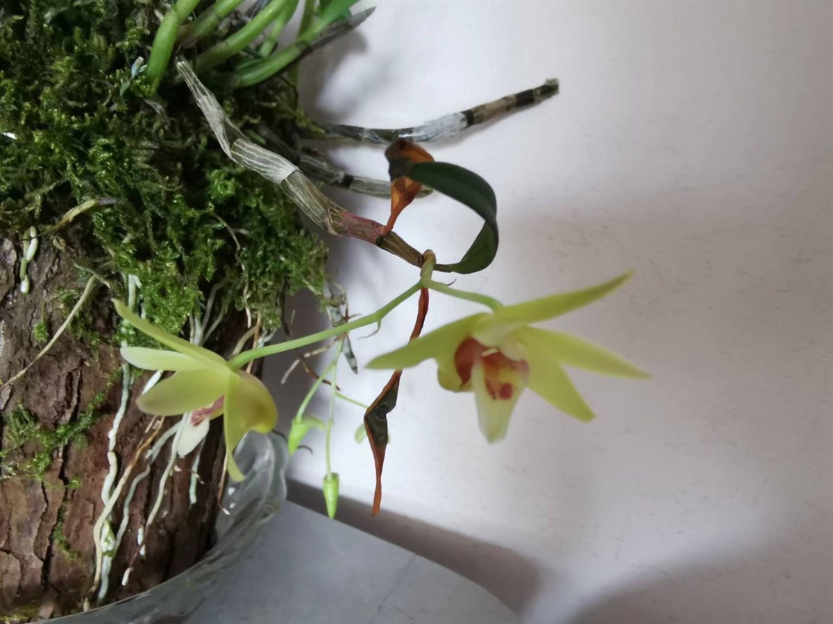原本无知,不知石斛为何物。看到俩小木桩枯杆皱皮的,上面有些绿苔一样的藓,垂着石斛长短不一的枯须,觉得这石斛的样子好丑,也不觉的能长高长大,更想不到它能开花。
