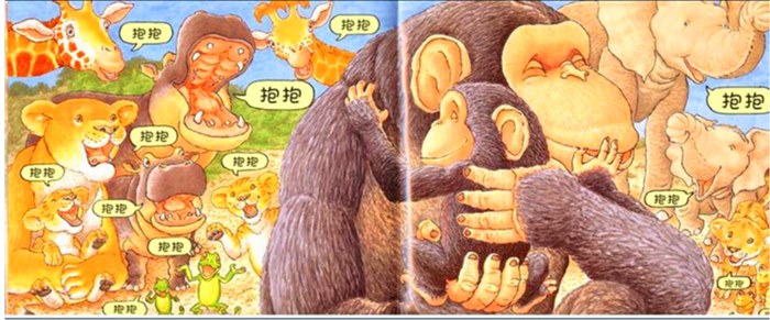 儿子2岁的时候,最喜欢的一本绘本就是《抱抱》,每每讲故事,总是用稚嫩的语气向我央求“听《抱抱》”“听《抱抱》”。有时我一意孤行想拓展一下他的绘本数量,悄悄把书藏到书架上时,他总能用那闪亮的眼睛从众多绘本中找到它,整个人笨手笨脚地抱着大大的《抱抱》,边走边嘟囔“《抱抱》!《抱抱》!”,满欢欣喜,踉踉跄跄地奔向我。 《抱抱》是英国的图画书大师杰兹·阿波罗的代表作。全书只有三句话:抱抱、宝宝、妈妈,虽然字数很少,但用心的插画,简单的话语,让人读起来极为温暖。 还记得第一次给儿子将《抱抱》这本绘本,我随手搬了一张小凳子,放在我的前面,让儿子坐在我的怀抱里,把书放在我们俩的前面。刚坐好的儿子,已经迫不及待仰着小脸等待着了。 “独自一人玩耍的小猩猩遇到小象和小象妈妈,开心地说‘抱抱’,接着他看到变色龙母子,小蛇母子都在‘抱抱’,慢慢地,他低下头,失落地离开了。” 随着故事情节的推进,儿子听着,听着,把自己想象成了想要“抱抱”的小猩猩,满眼泪花,依偎在我怀里的身体逐渐颤抖了起来,情不自禁地转过身来,张开双臂,扑向我的怀抱,嘴里嘟囔着“妈妈,抱抱。”“妈妈,抱抱”泪眼婆娑的样子惹的我心中暗涌翻滚。 拥抱是亲子间最自然的爱的表达,儿子现在只需要一个爱的拥抱。我与儿子相拥片刻之后,发现他的情绪逐渐平稳,我语气温和地地对他说:“要不我们看看,小猩猩有没有找到妈妈,和妈妈抱抱?” 怀在我腰间的手抱得更紧了,头在我怀里埋地更深了,小眼瞥了瞥书,满脸不情愿地说“不要!” 我猜想儿子还没有分清楚想象与现实,没有从小猩猩这个角色中走出来,极其柔软的内心让他无法接受悲伤的事情。但是这只是绘本故事并不是现实呀,如果此时此刻不引导他慢慢地去接受,以后形成恐惧心理,再有甚者,如果惧怕地连书都不看,就更难跨越了。 我鼓励他说道:“妈妈陪着你看,好不好?”他似乎从话语中找到了前行的力量,哽咽地点了点头,只是怀在我腰间的双手还是不肯离开,也许只有这样抱着我,他内定的焦虑与不安才能逐渐缓解。 “小猩猩妈妈终于出现了,‘妈妈’‘宝宝’‘抱抱’,小猩猩妈妈和小猩猩拥抱在了一起。”听到了这里,儿子皱着的眉头终于舒展开来。跨越了内心的恐惧,发现了故事的美好,又嚷嚷着让再读一遍,再读一遍,一本书整整看了一个小时,满心欢喜,内心满足…… 拥抱是重逢的喜悦,一个拥抱代替所有,泪腺极低的我,也被这份温情所感染。 爱有时需要表达,一个温暖的动作,一句温馨的话语,都能照亮别人前行的路。学会正确表达爱,能让彼此更幸福。无论是恋人一往情深的拥抱,还是亲人之间温馨的拥抱,抑或是朋友久别重逢的拥抱,都是令人向往的! 拥抱是最温暖、最强大的爱的力量。这是爱的力量呀!