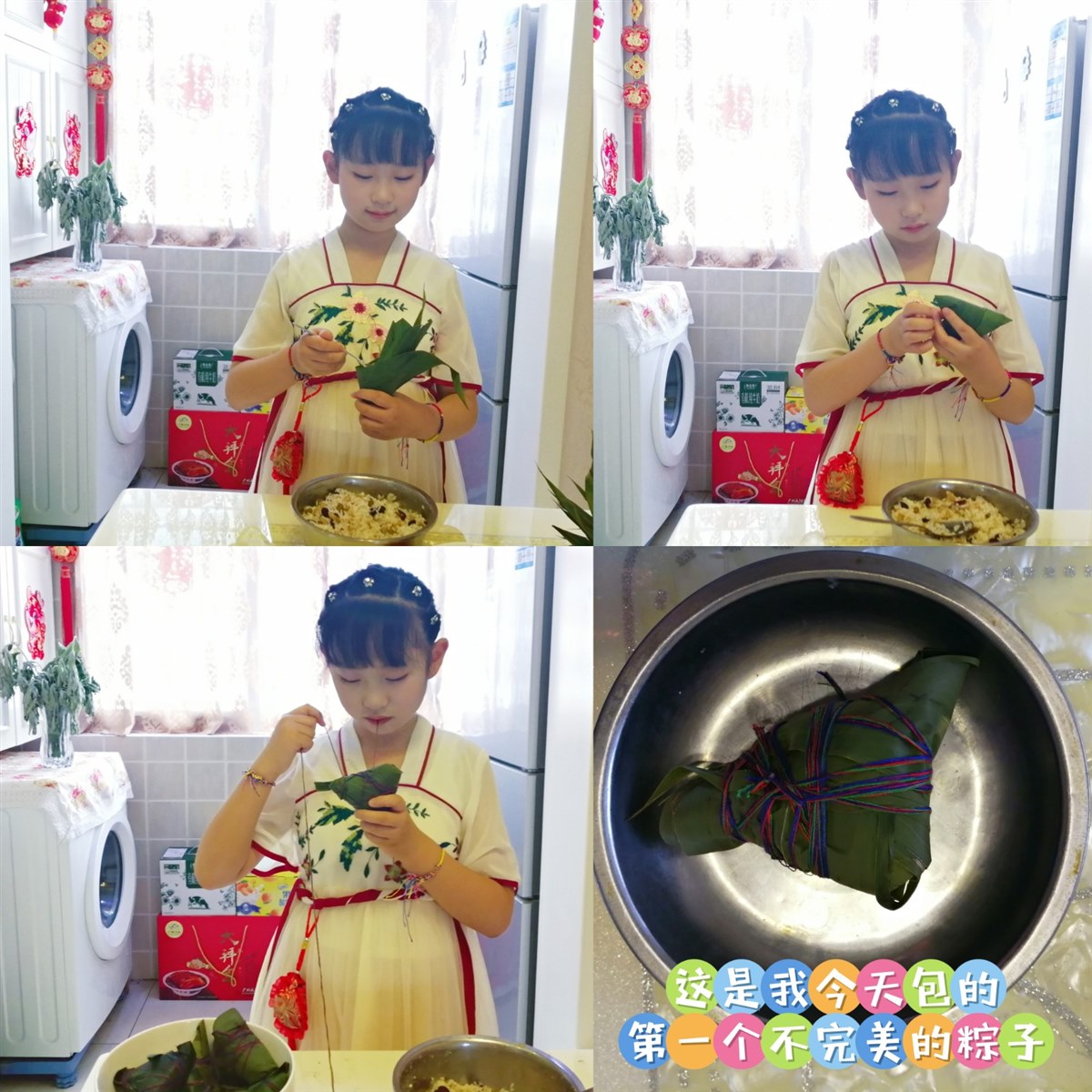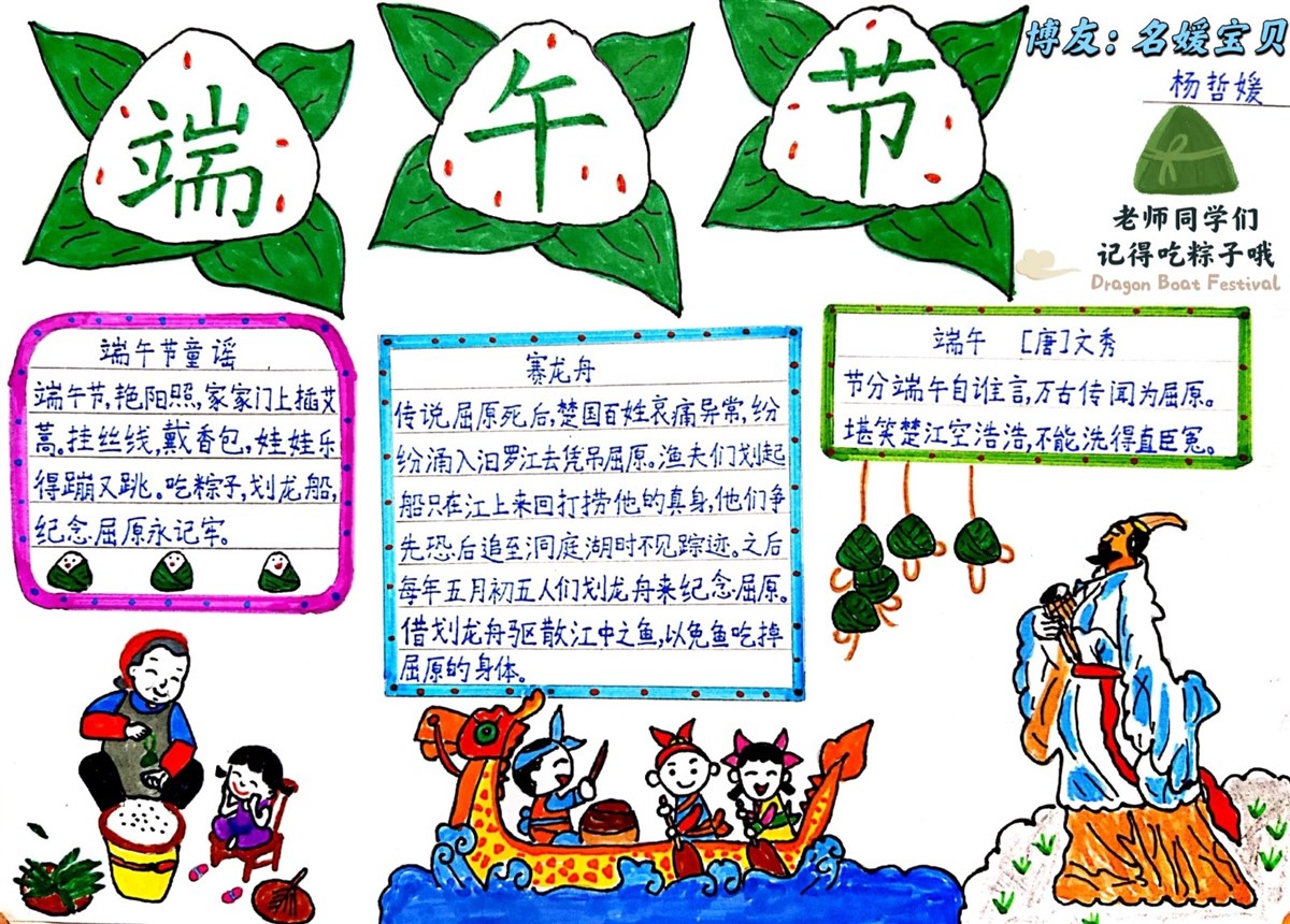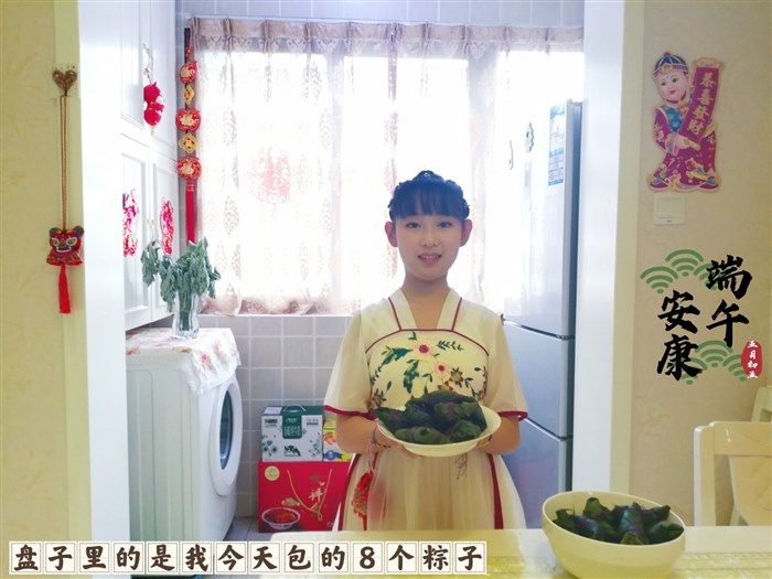 有意义的端午节 “端午节,艳阳照,家家门上插艾蒿。挂丝线,戴香包,娃娃乐得蹦又跳。吃粽子,划龙船,纪念屈原永记牢。”听着这首童谣,一年一度的端午节又来了! 说起端午节,还有一个传说故事呢。战国时期楚国有位诗人名叫屈原,他胸怀大志,为国家做出了许多贡献,却遭小人陷害,被赶出了楚国,流放到了南方。后来,楚国战败亡国,屈原知道后伤心欲绝,便在农历五月初五这一天投入汨罗江自尽。为了纪念屈原,人们就在每年这一天吃粽子、赛龙舟。  今天是端午节,听了这个故事,你是不是和我一样为屈原的爱国精神感到惋惜与敬佩呢?对小人的奸诈感到痛恨呢?如果你和我一样的心情,请记得吃粽子纪念爱国诗人屈原哦! 瞧,我和妈妈正忙活着包粽子呢。早晨,妈妈让我先把泡了一夜的500克糯米端出来,再在糯米中加入300克的多彩糖蜜豆,然后用勺子搅拌均匀,最后准备20个蜜枣备用。妈妈将泡了一夜的粽叶放入沸水中煮3分钟,再把捞出的粽叶放入冷水中泡一泡,准备包粽子。  由于好久没有包粽子,我已记不清包粽子的步骤了,只好请妈妈教我包粽子。在妈妈的指导下,我先将两片粽叶重叠,剪掉叶柄,从下往上卷起一个漏斗形状;再放入一大勺蜜豆糯米;随后放一个蜜枣和几勺蜜豆糯米,并用勺背将它们压实,让它们填满这个“漏斗”;最后用粽叶把粽子裹紧,并用绳子绑紧。一个不是很完美的粽子就包成功了!随后,我又包了7个粽子,一个比一个好。  粽子包好了,煮粽子也很关键哦。在妈妈的指导下,我把包好的粽子全部放入高压锅中,加凉水没过粽子,上汽后煮1个小时关火。关火后焖半个小时就可以出锅了。 妈妈把煮熟的粽子端到餐桌上时,浓郁的糯米和粽叶的香味扑鼻而来,令我垂涎欲滴!我迫不及待地拆开一个自己包的蜜豆糯米粽子,顾不上蘸糖就尝了一小口,口感香甜软糯,甜而不腻,令我回味无穷!吃完一个粽子,我还想吃第二个……  “小馋猫,别只顾自己吃了,咱们把粽子装在保温桶里,拿到医院,让姥姥姥爷也品尝品尝你包的粽子吧。”妈妈一边说着,一边把粽子都装在了保温桶里。 “媛媛长大了,会包粽子了,粽子真香、真甜……”姥姥连连夸我。我看着姥姥姥爷面带笑容地品尝着我亲手包的粽子,心里美滋滋的。这可是我第一次和姥姥姥爷一起过端午节呢! 我今天通过查找端午节的相关资料和包粽子,不仅让家人品尝到了自己亲手包的香甜软糯的粽子,还感受到了祖国博大精深的传统文化。这真是一个有意义的端午节啊! |