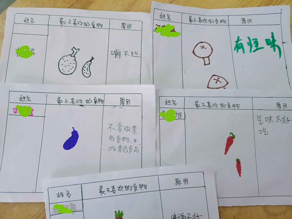 | 教育故事:小碗真干净 ——香菇滑鸡引发的大调查 午餐时间过半,班里的几个孩子拿着勺子小口小口地吃着米饭,对碗里的蔬菜不屑一顾。我问他们:“为什么不吃菜呀?”子阳噘着嘴说:“吴老师,我不爱吃香菇”其他几个孩子也纷纷说:“老师,我也不想吃。” 如何帮助孩子养成均衡饮食、不浪费、不挑食的进餐习惯呢?我决定先了解一下孩子们不喜欢吃的食物及原因。于是,我设计了一个调查表,请家长协助孩子把最不喜欢吃的食物以及不喜欢的原因记录下来,带到班级分享。  第二天,孩子们拿着自己和父母一起记录的调查表进行分享。为了选出孩子们最不爱吃的食物,根据孩子们的调查表,我制作了一个简单的统计图:统计图最下面一排是食物图片,左侧是一列数字,代表数量。请幼儿把自己的贴纸依次贴在食物图片的上方,表示“我不喜欢这个食物”。最后,通过逐一点数,幼儿很快就发现,不喜欢吃香菇的小朋友最多,其次是胡萝卜、芹菜、茄子等。 通过孩子的调查表发现不喜欢某种食物的原因大致可以归结为两大类,一类是做饭的技术问题,比如肉太硬、嚼不烂;另一类是个人喜好所致,如认为食物有怪味,不喜欢这个味道。 对于因做饭技术引起的问题,我们积极和园里的厨师说明了班里幼儿的想法。对此问题,后厨师傅们也积极改善了孩子们提出的建议,比如孩子们提出的“我觉得排骨可以炖得再烂一点”“香菇切小一点”“胡萝卜少放一点”。对于因气味问题引起的挑食,我们借助图画讲述,帮助幼儿了解不同食物的营养价值,引导他们不挑食。 为了进一步鼓励幼儿将饭菜吃干净,在这学期剩下的日子里我们班又发起了“小碗真干净”的评比活动:即在幼儿每天的签到处,设置小花奖励,当天哪个小朋友把饭菜全吃光了,就可以在自己的签到处增加一朵小花。 这两天自从创设了此次评比活动,孩子们每天吃完饭后都赶紧来做记录,有时会指着做好的记录说:“我今天又多了一朵小花,我有好多小花,谁谁不吃饭,一朵小花也没有。”有时他们看到当天谁的小花没有,会马上回班,站在没吃完饭的小朋友身边,鼓励小朋友一定要吃干净,还不忘提醒:“别忘记去做标记。” 一面小花记录统计墙,起到了激励幼儿节约饭菜不挑食的作用,同时,在每一次记录的过程中,孩子们都会对上面的小花数量进行点数和比较,帮助幼儿在生活中学习数学,用数学解决生活中的问题。 希望通过这次活动,孩子们能养成均衡饮食的好习惯,同时,也希望我们班的故事分享可以帮助到同样在为孩子饮食而烦恼的朋友们! |