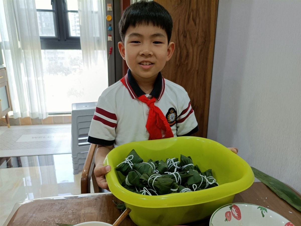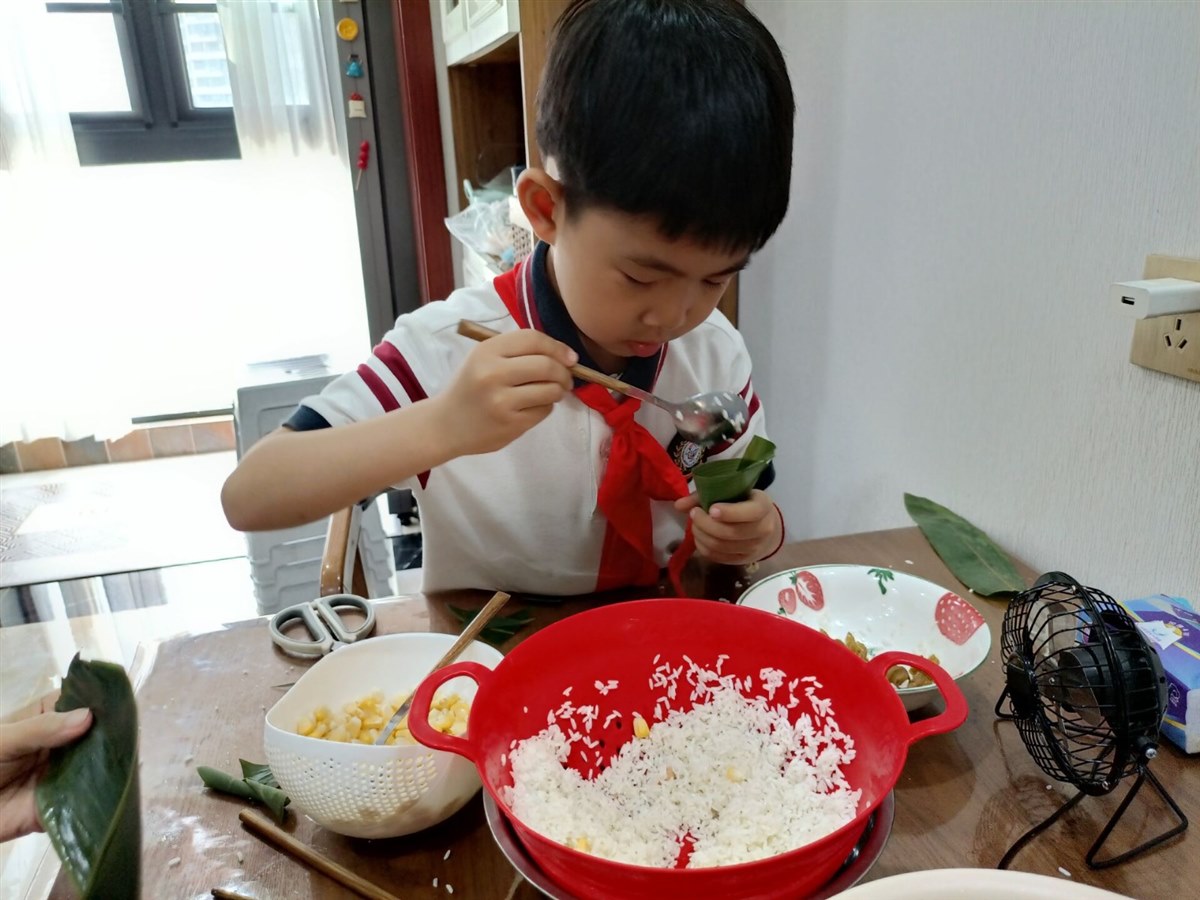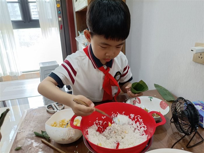 | 包 粽 子 榕江路学校二年级二班何艺涛 好开心呀,今天是端午节,是我日日盼望的日子,在这一天里,我可以包很多好吃的粽子,做很多可爱的香包。这不,妈妈正准备着包粽子的材料呢!“包粽子喽!包粽子喽!”  因为我从来没有亲自包过粽子,所以非常地激动。妈妈把材料端到桌子上。我一看:有粽叶、江米、蜜枣、玉米粒和花生。我看着这可爱的粮食宝宝,马上就被包起来蒸熟进入我们的肚子里,我心里实在有些不忍。妈妈拿起两片粽叶重叠一部分,再把它卷成漏斗形保证不会漏,再塞一点糯米进去再放一颗蜜枣和一些花生还有一些玉米,然后再用糯米填满,再由白线给它捆起来,一个小粽子就成了。看着妈妈手里小巧琳珑的粽子,我很是羡慕,想着那我包的是什么样的呢?  终于该我包了,我也像妈妈那样把两片粽叶重叠一部分,再卷成漏斗状,我也抓了一小把糯米塞进了粽叶里,可因为我的手松了一下粽叶里的糯米全掉了出来,“失败不怕重要的是坚持,再来!”妈妈鼓励我,第二遍我终于越过了那个坎,第三步就该放东西了我挑了一大块蜜枣放了进去,然后又放了一把糯米,可我在用白线包的时候,包不严好多糯米都洒了出来,妈妈教导我说:“在粽叶里面放东西不能放得太多,要不然就会潵出来,我点了点头,看我再三努力的面上,成功的光芒终于照到了我身上,我成功包好了一个粽子,虽然看着不怎样,但很好吃。 |