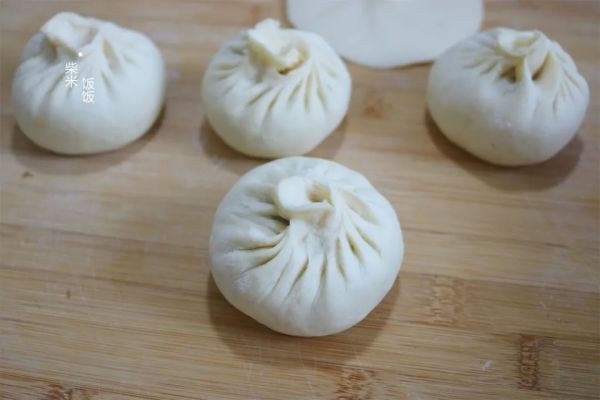 整理好的包子放在蒸屉上,二次醒发至体积明显变大。现在夏天温度高,醒发20分钟左右就差不多了。