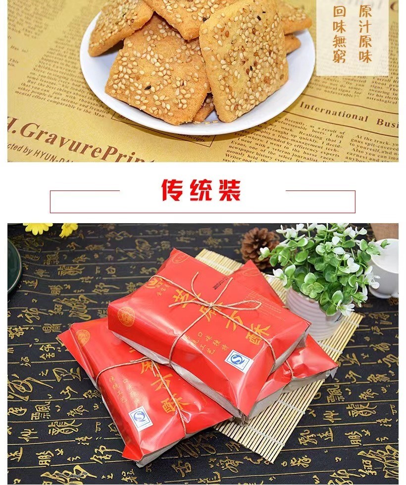 每到过年的时候,家里来的亲戚或客人,都会用网兜提一些香蕉苹果,同时,另一只手还会拎一两提点心。当时的点心种类有蜜三刀、方酥(方形)、桃酥(圆形)等,方酥、桃酥因甜度适中,咬一口,满嘴酥脆清香,最受欢迎。有次跟父亲一起到合作社买方酥,只见售货员先把四五块方酥摞在一起,放在一张纸质很硬、很粗的黄褐色牛粪纸上,然后用手贴着方酥四周熟练地把纸折上去,多出的纸相互叠压,然后,在最上面放上一张鲜红油亮的红纸,最后,从旁边卷成一大坨的小粗纸绳上拽下一小段,上下左右交叉缠几下,回到最上面时,系成蝴蝶结,方便人手指插进圆环拎着,非常类似现在我们能见到的滑县道口烧鸡的包装。