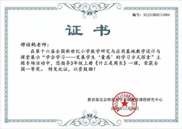 您看到的,是第十六届全国新世纪小学数学课堂展示的获奖证书。这场课堂大赛,整整持续了4个月。