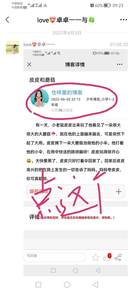 为什么要写博呢?这个问题困扰了很多姑娘、小伙儿。写博可以让你认识很多身边的大咖,可以让你了解更多的朋友;可以让你知道朋友的方方面面……就拿第十五届博客大赛特等奖陶小莉老师来说,  原来同事时只觉得她是一个漂亮、善良的数学老师,可是通过博客平台让我对她有了新的认识,她不仅会教数学,原来还是一个大才女呢!金奖的获得者马卫东老师,是我师范的同学,原来只知道他是美术专业,现在才知道它不仅会画画,他还是一位胸有笔墨的大才子呢!第十六届博客大赛如火如荼地进行着,每个地区每个学校的老师和孩子们都绞尽脑汁发着一篇篇精美的博文。看着一篇篇精华博文右上角的精华二字,每个写博人都想得到他,每次打开博文只要是有个红艳艳的“精华”二字,都是写博路上前行的明灯,指引着你前行!其实,我也是一个写博小白,从一开始的不会登录,到现在的得心应手。在此路上有我年长的青雯大姐、淑萍大姐的耐心辅导,有我年轻貌美的艳慧妹妹的倾情相助,这不第十六届大赛以来的第一篇精华悄然而至。今年的博客不同于往年,以往每天可以发三篇,现在每天只能发一篇,而且质量比往年要求要高。每一篇博文都要精敲细琢磨才能得精华。当然我们写博不止是为了精华而来,而是可以记录生活工作的点点滴滴,他日再打开你会发现原来那年博客园里有多多花开的痕迹。 为什么要写博呢?很多老师都疑问:如果光让会写的老师发博,多好呀!不会写的纯属凑数。关于这个问题大家想想:随着现在社会的进步,大多数人平时忙于工作,闲暇时手捧手机刷一会儿短视频,看一会儿电视剧。看书几乎是少数人的专利。再看看大街上行走的行人,除了步履匆匆的人,就剩下低头看手机的啦……前几天看过一则短视频:一个年轻小伙儿边走边看手机,以至于把人家门口的油锅打翻烧到自己才知道自己没看路。记录生活,记录工作,记录每个碎片化的时代我们的点点滴滴。不逼自己一把怎么知道自己有多优秀呢? 关于学生写博,很多家长不理解,学生也没有手机,写博不是给了孩子一个玩手机的机会吗?首先各位家长要清楚:写博不仅可以锻炼孩子的语言表达能力,还可以培养孩子的观察能力,提升逻辑思维能力。更为孩子们的习作打下坚实的基础。写博的途经有很多:可以用讯飞语记、语音助手;这样可以培养孩子的语言表达能力。传图识字可以培养孩子静下心来记录生活的美好画面。也可以两者都用,各方面能力得到提高。但是,通过观察孩子们的写博,发现很多孩子写博时没有添加:少年博览。这个我要告诉大家,需要在系统里添加,第一次要用电脑添加,接着就可以用手机选择了。另外,我们转发时很多家长朋友用的是app模式,这样很多家长朋友想学习学习博文,但是不便于打开,我们可以用链接的形式分享,这样大家很轻松就能打开博文,互相学习共同提高。  试想:漫漫长假,如果我们生活毫无规律,东一榔头西一斧,那么我们这个假期肯定是乏味的、无意义的。假期是弯道超车的黄金时期,朋友们!让我们携手同行好好把握博客平台,让博客平台成为我们积累生活财富的快乐驿站吧!