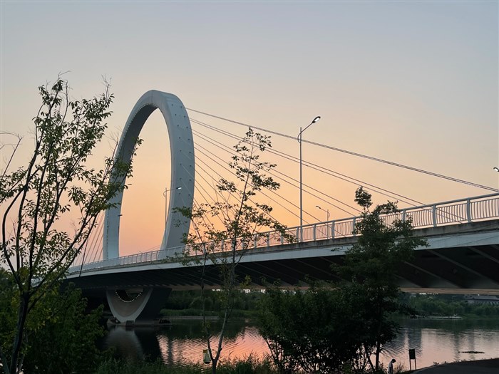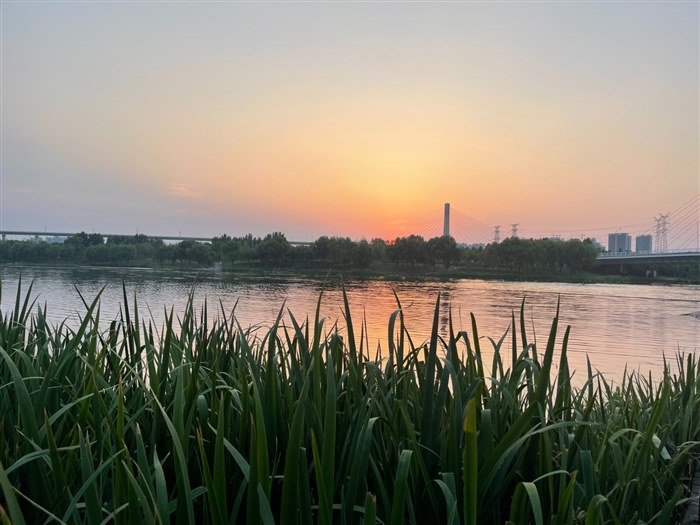 于自然中寻得静谧。蝶湖旁边的潮晟路斜跨潮河桥,远看形似一枚巨大的戒指,故而有“戒指桥”之名,是郑州著名的爱情地标。夜幕降临湖水中倒映着桥的倩影,一阵微风拂面,湖面在远处余晖的反衬下呈现出一抹橘红,晕染得如同一幅油画。 闷热的木桥上,转角忽而吹来一阵飒爽的风,将皮肤和衣服之间的黏腻吹离,束起头发,让面庞接受八面而来的风。空气流动极快,我觉察到自己的呼吸都开始变得饱满而畅快。立在木桥上,一束光打在我的头顶,好友简直就是一个捕捉美好小能手,着一身碎花裙的我,在好友的镜头里我如同一个邻家女孩,我们彼此哈哈大笑着,被爱着被欣赏着…… 曲径通幽处,传来布谷鸟清脆的声音。林荫小道上渐渐生出凉意,好不惬意!河边红蓼和金光菊格外“文静”,好似犹抱琵琶半遮面的女子,等着路人去欣赏去驻足去拍照……趟过涓涓细流,依稀可见水中若隐若现的鱼儿,落日余晖下这河水虽有些温度,但伴着旁边一群玩水的孩童,仿佛我也回到了我的童年时光……
