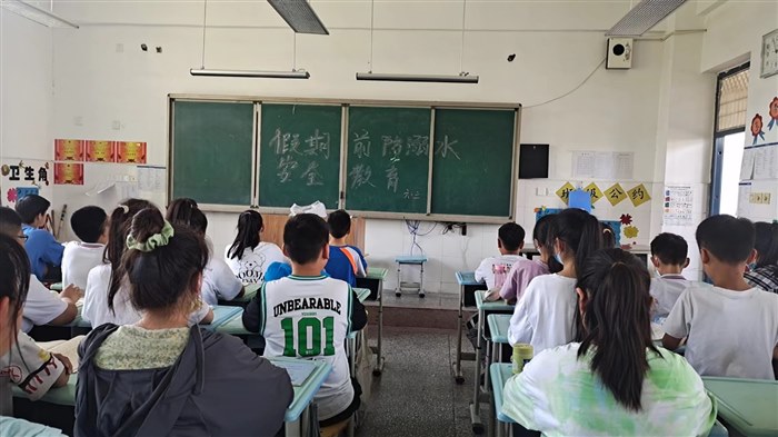 下午4点英语考试结束,我们首先进行了假期前的防溺水班队会,对你们进行暑假安全教育,再次嘱托你们一定要记住有关防溺水的“六不,一会”以及交通安全,用电安全等一些常规安全的教育。