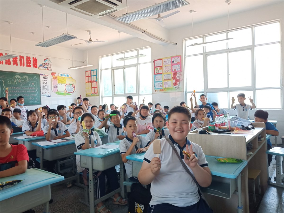最美的花 人们都说牡丹花富贵,玫瑰花深情,百合花温馨,而我要说最美的花是孩子们的笑脸! 炎热的夏天来了,该过六一儿童节了,为我们班的孩子们准备什么礼物呢?当中午火辣辣的太阳炙烤着大地的时候,我来了灵感,给孩子们没人送一块冰糕多好,于是,中午我趁着值完班给孩子们买了冰糕,悄悄地用纸箱包着搬进教室,当孩子们都到校时,没人桌子上放了一块冰糕,那孩子们看到冰糕眼前一亮,我说:“还等啥,吃吧,我愿与你们一起分享快乐,孩子们,六一快乐!”孩子们一个个都露出来了笑脸,那灿烂的纯真的笑脸,真的是人间最美的花! 苦战了半个月,转眼迎来了期末考试,在考完语文的中午,我冒着酷暑去冷饮店为孩子们精心挑选了四十多种口味的冰糕,先暂存冰糕店,给上大二回来的儿子说好,下午考完英语四点多把冰糕送到我们教室,于是,等考完,儿子把冰糕送过来,我对本班的学生们说:“同学们,亲爱的孩子们,今天我给你们上最后一课,不给你们讲课文,不让你们背古诗,只让你们吃冰糕,让你们有一个对四年级朱老师有一个美好的回忆,我现在看你们一个比一个亲切,因为我早已把你们当做了我的孩子……我有些激动,有些不舍,因为这里有调皮爱接话头的周孜琪、有倔的很的张钰舟、有像小鸟一样喳喳地对我讲不听的徐江涵、有不爱写作业却早早就把班班通打开,把字强字立小程序打开,调出今天要写的字的唐浩宇、杨浩佳、有爱干活的王子墨、小王子龙……可以说,看到哪个孩子,我都能说出他(她)的故事,跟着我一年或者两年的成长历程,这其中有好些场景很令我难忘,看着他们一点点进步,一点点长高,一天天懂事,今天要分别了,我真的很舍不得,舍不得……因为我看着看着我眼圈红了,不能往下说了只一个字——吃”结果孩子们撕开冰糕纸都咧开嘴笑了,像一朵朵灿烂的太阳花,温暖了我的心,这时我才感觉与孩子们在一起是最快乐的,我所有的付出都值了! 那一天,我把我的感受和孩子们的笑脸,分享到朋友圈,一下子就被刷爆了,我很开心,与大家一起分享快乐! 我慢慢地一路走来,感觉与孩子一起最快乐,你付出的片片真心,你就会收获张张笑脸,他们就像朵朵鲜花,妆点你的教育四季!