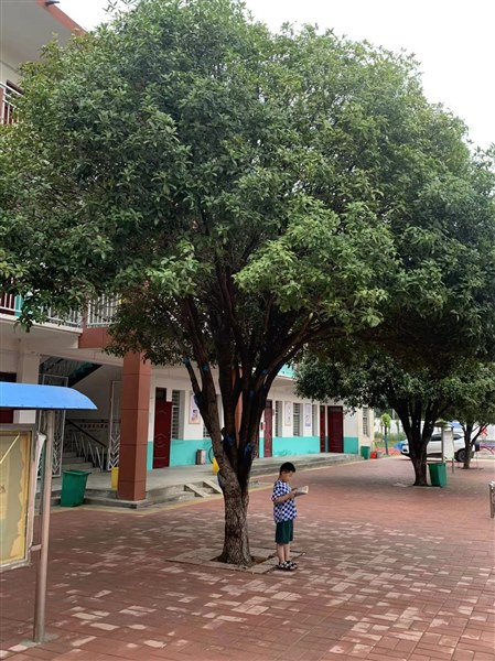 就这样,我站在这棵巨大的绿伞下,完成了我的晨诵内容《朱子家训》。我去找妈妈背诵,她笑着对我说:“早起的鸟儿有虫吃,能和鸟争鸣,你很厉害哦!”