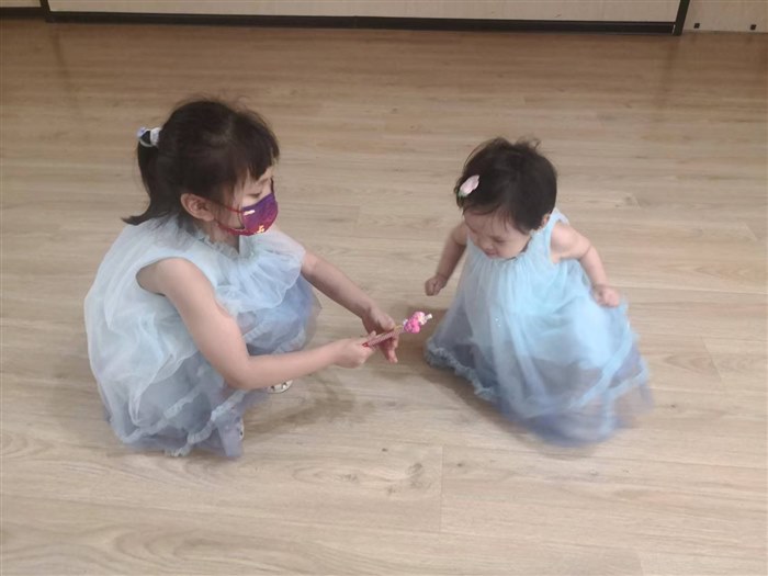 在家里,小雨点很喜欢妹妹,也特别照顾妹妹。两个孩子也会抢东西、互相告状,但是友爱的时刻更多。 平时我也努力做到“一碗水端平”,心里默念:“妹妹是孩子,姐姐也是孩子。不要因为妹妹小,就让姐姐承担过多的批评和责任。”妹妹挨打的次数更多一些,因为她总是霸占姐姐正在玩的物品,并且不接受调解,但是,每当我想揍妹妹的时候,姐姐总是第一时间保护她、拉住我。 二胎家庭确实会比一个孩子的家庭更忙碌一些,两个孩子的关系要培养好,多说“姐姐(妹妹)对你真好,好吃的、好玩的都愿意和你分享”这样的正面引导的话。少说一些让她们竞争、内卷的话,比如“姐姐(妹妹)快吃完了,你也快吃吧,不然她就过来抢你的了”…… 我也要多看书,多思考,多实践,将孩子们养好、教育好,成功的经验还能迁移到学生们身上。 总之,能够成为你们的妈妈,我很荣幸。妈妈有一个小小的心愿,就是希望姐姐爱妹妹,妹妹爱姐姐,在没有父母护佑的未来,能够成为彼此依靠的肩膀。