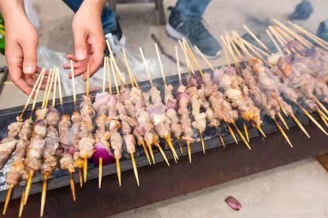 以美食更快乐的是制作美食的过程,凡是来的人,没有一个能闲着的。洗菜的洗菜,切菜的切菜,穿串的穿串,架火的架火,大家都欢天喜地的张罗着。 烧烤我们算是行家,没有发哨的配料,就是简简单单的盐和辣椒面儿,孜然粒是烧烤的灵魂。焦香里又不失食材本身的味道,就是这样简单的烹饪才最俘人心。 火炉上的烤串,对于吃货的世界,物尽其用是每一个吃货的宗旨。木炭在火炉里噼里啪啦的燃烧,羊肉串在火炉上滋滋啦啦的,蹦出诱人的响声,油脂四溅,闻到香味的人早已垂涎三尺。 向往的生活,不过一二事,共享月色慷慨。月色微凉,燥热退去,昏黄的夜灯,热闹的嬉笑声,这样的生活真是快乐。正如南怀瑾老先生说的那样,“三千年读史,不外功名利禄,九万里悟道,终归诗酒田园。” 幸福莫过于厨房里有烟火,饭桌上有美食,身边有知己,客厅里有欢笑。