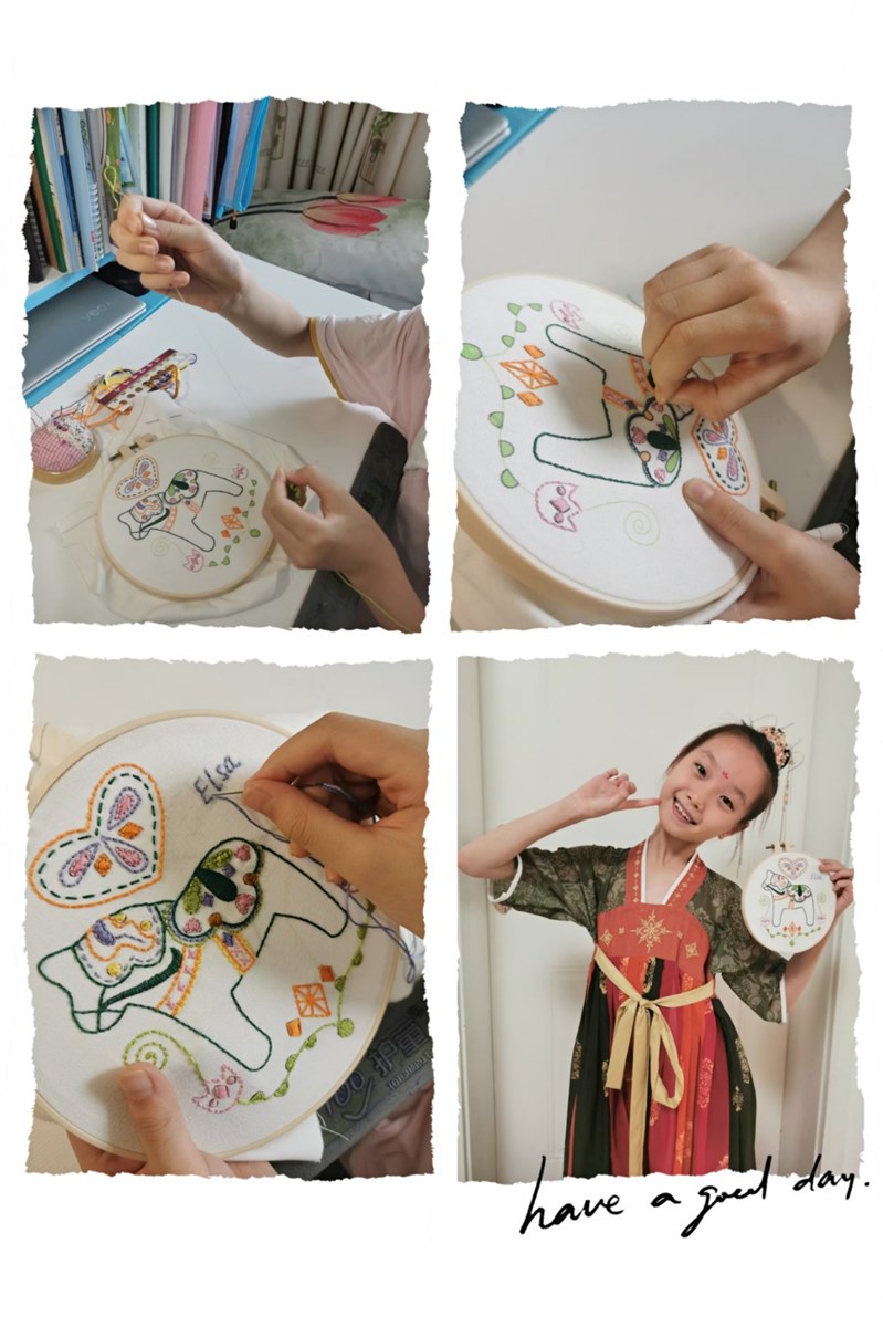 | 崔昊辰 绣花是中国民间艺术,是美与巧的体现,更是古代劳动人民的智慧结晶。今天,我就和妈妈学习了绣花。 在我的心中,绣花一点儿也不难,妈妈平时绣香包的时候看起来轻松自如,一会儿功夫,一只小船就绣好了,而且可漂亮了。因此,妈妈还没开始讲方法,我就跃跃欲试了。 妈妈开始讲方法和技巧,可我觉得一点也不难,就开始想象着成品的模样了。等妈妈讲完了,我才缓过神来,开始“比葫芦画瓢”照着妈妈绣。虽然古话说“比葫芦画瓢——走不了样”,但是到我这儿样子却走了。我绣得歪七扭八,绣布反面更是一团乱麻,看都没法看。而且我发现我竟然没打结,过了一会儿,前面绣的全没了。妈妈笑我:“你这把拆线的功夫都省了。”我不服气,只好再来一次。 妈妈又给我重新讲了一次方法,我发现绣花真是看着简单,学起来难呀!光绣法都有好多种,有缎面绣呀、回针绣呀,直线绣呀,等等等等……不过我既然已经学到这里了,我还要继续学下去。这一次我先认认真真地检查好针线,再开始绣。我一针一针地绣,但还是要妈妈告诉我针法。过了一会儿,我熟练了些,就想加快速度,没想到我差点儿把手戳破了。看来“心急吃不了热豆腐”,我只好放慢速度,静下心来,一针一针绣。 现在,我已经能独立绣一些简单的小图案了。从学习绣花中我明白了做事情不能急躁,要虚心,把方法学会了,再加上耐心和细心,才能成功。 绣花算是我们的家传手艺了,我也愿意把它传下去。同时,我也为我又学会了一样新技能而感到自豪!