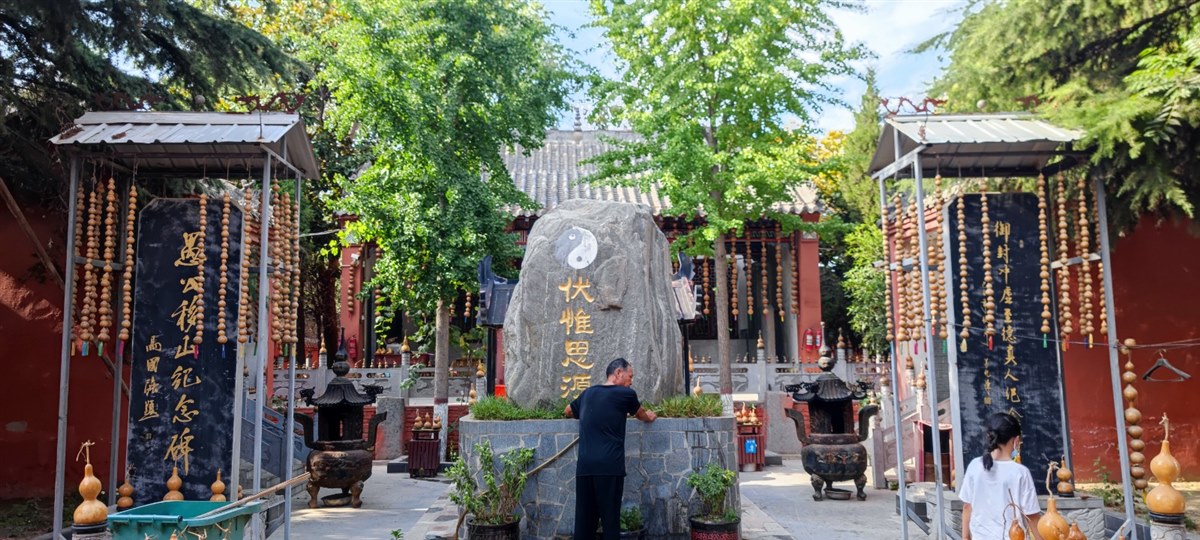 院子里同样栽植着苍松翠柏,给这穿越历史时空的小院平添了几分幽静神秘之感。坐在院子里的木凳上,听着松柏的沙沙声,在缭绕的烟雾中,仿佛听到列子正在讲述一个个引人深思的寓言故事。