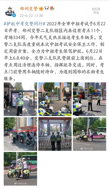 今天,你们准备“赴汤蹈火”,同时天气也很热,但早上6点40,警察叔叔,提前上岗到位,在考点周边清理违停车辆,为你们创造出绿色通道!