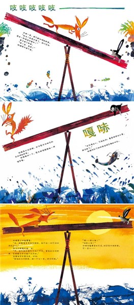 | 看我,如何和孩子们一起读绘本 中心幼儿园闫保贤 闫老师:“孩子们,今天是周五,又到了一起阅读绘本的时刻。闫老师给你们带来了两只小动物的影子,故事就发生在他们身上。一起去看一看是谁,又有什么有趣的事情发生。” 涵涵:这是一只狐狸和兔子。 一诺:一只狐狸饿了,在追赶着兔子。想要吃掉它。 超超:我觉得是狐狸和兔子没错,可是他俩看起来很开心的在海里? 闫老师:“孩子你们解读的都有自己的独特想法,很好。发现了这么多闫老师都没发现的细节,证明你们观察的很仔细。那我们接着看看,会发生什么事情吧。”(出示第三张图片) 涵涵:“果然是兔子和狐狸。” 轩轩:“狐狸在追着兔子跑,想要抓住兔子。兔子为了逃跑,准备跑到桥上。” 宇哲高高的举着手:“我看着那个桥很不结实,木板都掉进了河里。” 闫老师:“不错,我看天气预报说。森林里下了好久的雨。。” 又又:“那就是被大雨给冲掉了。这么不牢固的桥,小兔子能过,狐狸太重,肯定就会掉进河里。这样兔子就能获救了。” 闫老师:“那我们接着看。到底狐狸有没有抓住兔子,兔子有没有自救成功。”(孩子们在紧张的气氛中,聚精会神的等待解读下页。他们有的希望兔子可以逃跑成功,而有的小朋友想要狐狸抓捕成功。) 悦心:“不好,稳固桥板的石头掉落了。” (孩子们都被悦心的一句话给提醒了。关注点转移到了支撑两边桥的石头上。) 诺诺:“看,他们一上桥,石头掉了,桥还歪了。不平了。” 烁烁:“这个桥好像跷跷板。” 佳伟:“因为狐狸重,所以它那边往下一点。兔子轻就往高一点。” 诺言似乎发现了新的事情,喊着:“老师老师我我我。我觉得狐狸得不能动了,兔子往右跑一点。桥就会平衡。不然都会掉进河里。” 宇哲:“不行,狐狸肯定要跑,他要吃兔子。肯定会跑过去吃兔子。我觉得兔子可以跑快一点,冲过去把狐狸自己丢在桥上。” 宝贝:“我觉得他俩都不能跑了。再跑都会失去生命。闫老师过,安全第一,生命第一。得有命,才能做其他事。” 闫老师:“给宝贝点掌声。说的太对了。生命第一。就算是敌人,在危险来临的时候为了活下去,也可以先当朋友。” 孩子们陷入了沉寂,教室里突然安静了下来。似乎他们在想这个问题。 欢欢说:“那他们俩就不能跑。要想办法平衡。为了活下去,他们得平衡。” 终于,不负众望。狐狸和兔子在几番挣扎中,找到了平衡,狐狸不在追,兔子不在跑。他们俩在平衡中,从白天到黑夜,等待救助。然而故事并没有结束,他们的“路途”也并未一帆风顺,在等待救助的时候,上天还给了他们额外的“奖励”。但是他们俩在新的困难中,坚持着3自己的生命。最终。。。。。。 这个故事就这样结束了,孩子们似乎还意犹未尽的在讨论着。 绘本,魔力十足。整节活动下来,老师们会发现,我几乎没有说几句话,都是孩子们自己讲下来的。或许有些地方和故事并不一致,或许没有按照书上写的话一句一句的复述,但孩子们讲了,把重点表述了出来,并在活动中成长了。他们从开始就发现了细节性的内容、说出了狐狸和兔子的敌对关系、观察了出平衡、在情感上又体会到了兔子和狐狸经过相处角色上的变化:从敌人变成了朋友等等。这些都是他们自己发现的,我觉得就很成功。在这样的读绘本中他们收获的不仅仅是知识。 一千个人的眼中有一千个哈姆雷特。我们要允许孩子们有一千种解读。 很多老师都不知道怎么去上绘本课,其实绘本最好进行。让孩子们自己去观察,大胆自由表达。老师,给与实时的引导就可以。在过程中充分发挥老师的教育机智,灵活的应对,但是一定要记住:少说话,让孩子自己去表达!