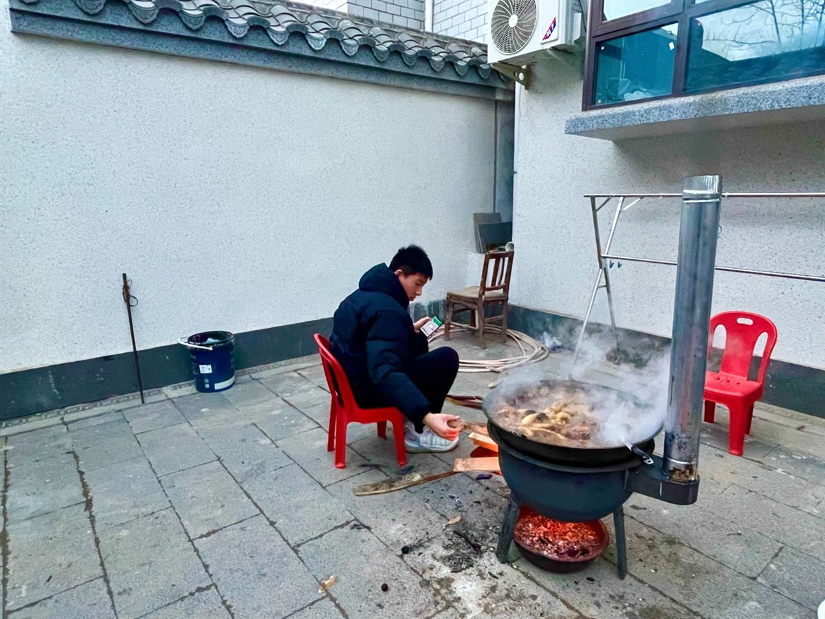 儿子坐在炉火前,边玩手机边烧火,这样的场景他不多见,不过也并不陌生,但远没有我着迷。