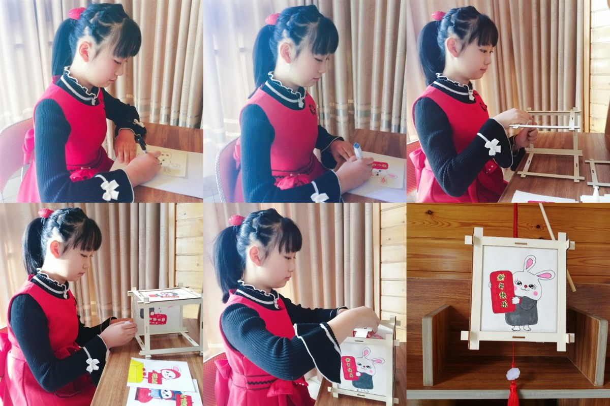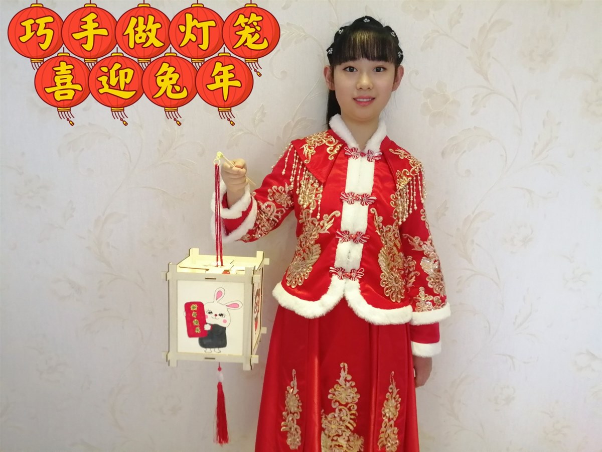| 巧手做灯笼,喜迎兔年 今天是大年初一,也是个热闹非凡的喜庆日子。伴随着新年的钟声和烟花爆竹声响起,壬寅虎年已潇洒地与我们挥手告别,“一路小跑”而来的癸卯兔年与我们撞个满怀。在这个年味十足的日子里,我满脸洋溢着幸福地提着自己用巧手做的精美灯笼给老师、同学以及家人们拜个年:祝大家新年快乐,无灾无难,“兔”飞猛进,财富“兔”出,前“兔”似锦,大展宏“兔”!在与癸卯兔相伴的384天时光里,愿我们所得皆如愿,万事皆胜意! 我能在送走金虎迎玉兔的喜庆时光里提着自己制作的灯笼,满脸幸福地与热气腾腾的年味撞个满怀,灵感源于学校安排的寒假自选实践作业。刚放寒假时,我们数学老师布置了一项寒假自选实践作业,就是利用学过的正方体、长方体、圆等知识制作一个漂亮的灯笼。随后,我看到学校公众号里有一项“花灯小匠人闹元宵”的寒假自选实践作业,顿时引起了我的兴趣。 于是,我通过查阅资料了解灯笼的寓意与来历。资料显示,中国的灯笼又统称为灯彩,起源于1800多年前的西汉时期,每年的农历正月十五元宵节前后,人们都挂起象征团圆意义的红灯笼,来营造一种喜庆的氛围。但也有相传唐明皇于元宵节在上阳宫大陈灯影,是为了庆祝国泰民安,才扎结花灯,借着闪烁不定的灯光,象征着“彩龙兆祥,民富国强”,花灯的风气至今仍广为流行。后来,灯笼就成了我们中国人喜庆的象征。经过历代灯彩艺人的继承和发展,形成了丰富多彩的品种和高超的工艺水平。在查阅资料了解后,一个念头涌入心头,心想:我要是能在兔年之前用巧手做个有兔子元素的灯笼,然后从春节提到元宵节,既能在浓浓的年味里拥抱新年,又能完成学校寒假自选实践作业,那该有多么美好啊! 要想做到两全其美,有些不太容易。在经过反复思考与不断尝试,我终于在大年三十确定了灯笼的形状,并准备全了做长方体灯笼所需的材料:2张图画纸、1根铅笔、1把剪刀、1把尺子、1根红色麻绳、1根手提杆、1条流苏、1个电子灯、1瓶酒精胶水、4个长方形框架、4根卡条和水彩笔。  材料准备就绪,开始制作灯笼了。首先,我用铅笔在在图画纸上画出4个宽13厘米,长15厘米的长方形,并用剪刀剪下备用;接着在4张图画纸上分别画出4个漂亮的兔子图案,并写上新年祝福语;再将4个宽18厘米,高20厘米的框架组装好;然后用酒精胶水由里向外粘灯笼面;随后分别用2根卡条在顶部和底部交叉固定好;最后在底部卡条上系上流苏,顶部卡条上系上手提杆和电子灯的开关。一个漂亮的灯笼便呈现在我的眼前,使家中洋溢着喜庆的氛围。 爸爸妈妈为了满足我在春晚开始前提着自己制作的精美灯笼在小区里走一走,逛一逛的愿望,早早准备好了一桌有吉祥寓意的好菜。夜幕降临,我们全家围坐餐桌旁,一边说笑着,一边品尝着盛满爱的味道的年夜饭。 品尝完丰盛的年夜饭,我迫不及待地换上崭新的汉服,仪式感满满地提着自己制作的独一无二的长方体灯笼,随着灯笼上可爱的癸卯兔在小区里逛一逛,聆听着噼里啪啦的鞭炮声,欣赏着夜空中五彩缤纷的烟花,感受着浓浓的年味。你瞧,一身古风穿搭的我,在除夕夜时提着灯笼,漫步在小区是多么的惬意啊!一切在五彩缤纷的烟花和闪烁的彩灯映衬下是多么美好啊!此情此景,让我瞬间以为自己穿越到了另一个时空,心中激动不已! 巧手做灯笼,喜迎兔年。我能在兔年之前,如愿以偿地制作一个专属的长方体灯笼,并且能仪式感十足地迎接癸卯兔年的到来,感到无比愉快与幸福!通过查阅资料和动手操作,我不仅体会到我国传统工艺的魅力,还完成了学校布置的寒假自选实践作业,并且还能寄托对兔年的美好期盼与向往,真可谓一举多得啊! |
