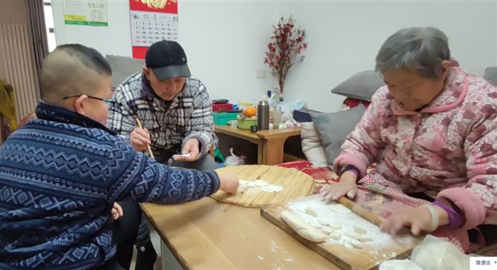 早晨,在一阵鞭炮声中,新的一年,到来了。电视机里放着喜庆的音乐,床边放着新衣服,空气中弥漫着欢天喜地的气氛。我赶紧穿好衣服,去和奶奶包饺子。