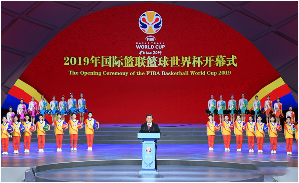 【我校学生在习近平主席宣布2019国际篮联篮球世界杯开幕时场景】