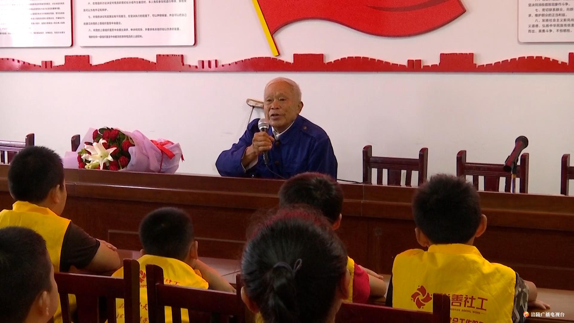 在江东街道太阳村,30多位志愿者和家长正在认真聆听老兵余安坤讲述自己当年上阵杀敌的故事。余安坤老人今年80岁,1959年到1962年在部队服役,曾参加“西藏平叛战”“林山战役”“罗龙战役”等,在“林山战役”中英勇抗敌不幸失去了右腿,服役期间荣立“三等功”三次。