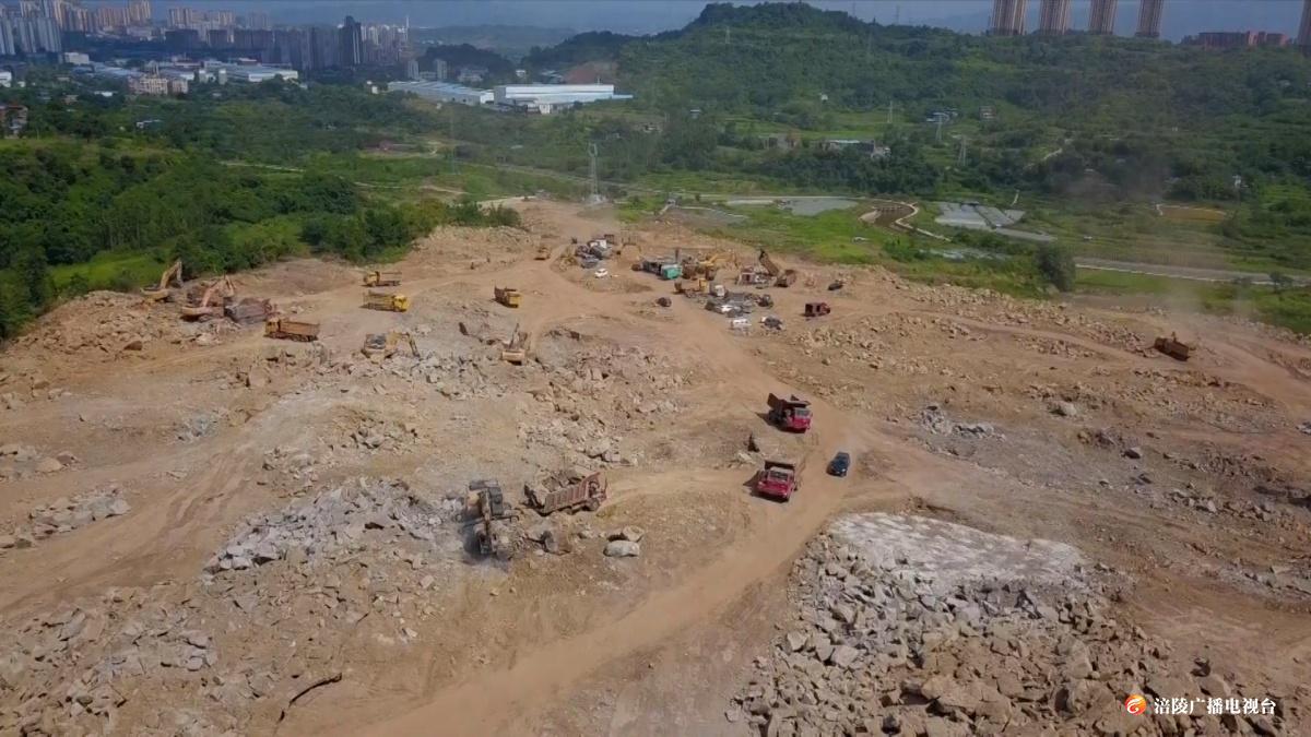在位于涪陵新区的中国榨菜城项目施工现场,大型机械正在紧张进行场平作业。