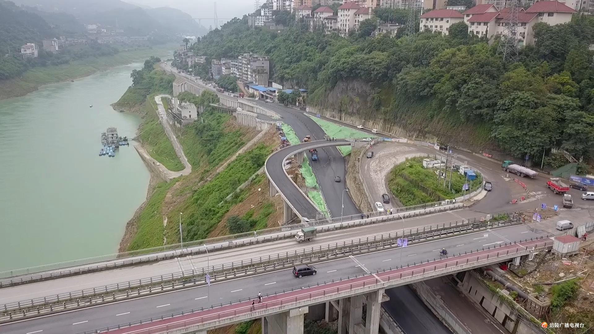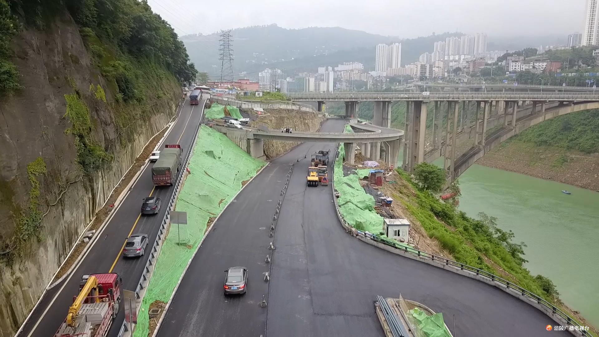 经过一年多的紧张建设,在涪陵乌江大桥西桥头立交一期项目工程现场可以看到,319国道与涪陵城区滨江路连接段今天进入试通行阶段。