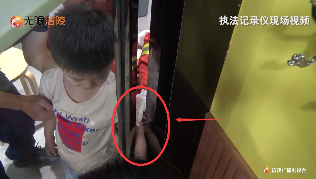 14号上午,一个五岁多的小男孩不小心被玻璃门紧紧夹住手臂,幸好消防救援人员及时赶到,大伙合力帮他脱困。