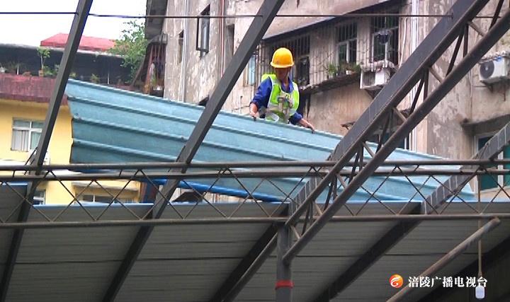 昨天早上7点多钟,在城区建涪路水电新村,6名施工队员已经开始拆除这里一个违章自建停车场的彩钢棚,面积达587平米。