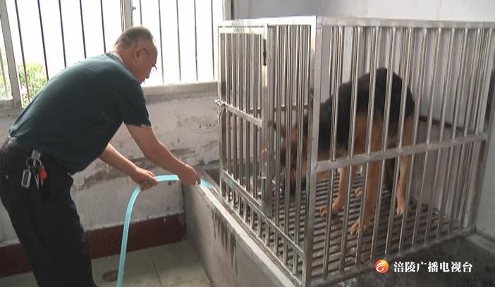 这里是位于清溪镇的新近投用的区犬只留检站,工作人员正忙前忙后,给刚送进来的流浪狗冲洗狗舍、喂食清水。