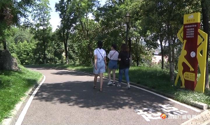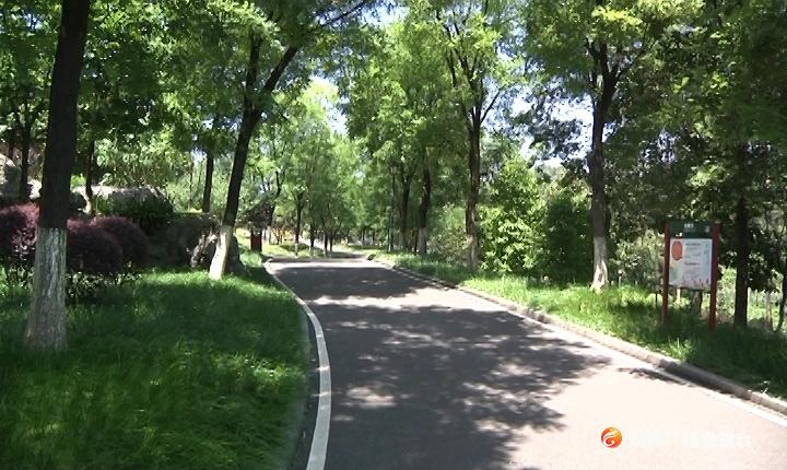 公园内设有健康教育宣传专栏、以健康文明为主题元素的提示标志和两条健康步道。其中有一条步道上设置了健身区,有双杠、踏桩、蹬腿器等各种健身器材。
