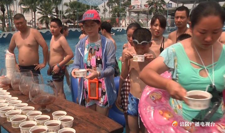 蔺市红酒小镇水上乐园特意熬制了绿豆汤,向游客免费供应。