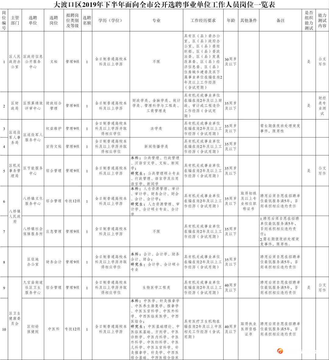 重庆多个机关事业单位选调、公招298人!涪陵也有!