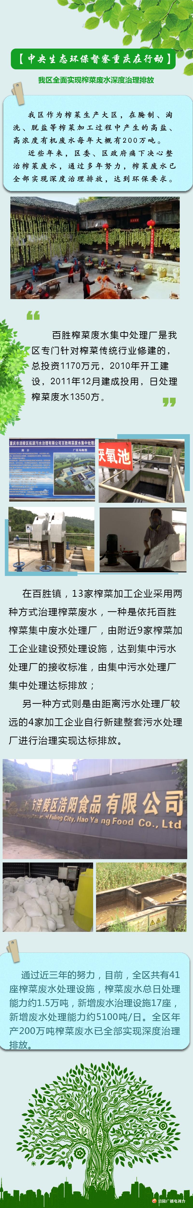 【中央生态环保督察重庆在行动】我区全面实现榨菜废水深度治理排放