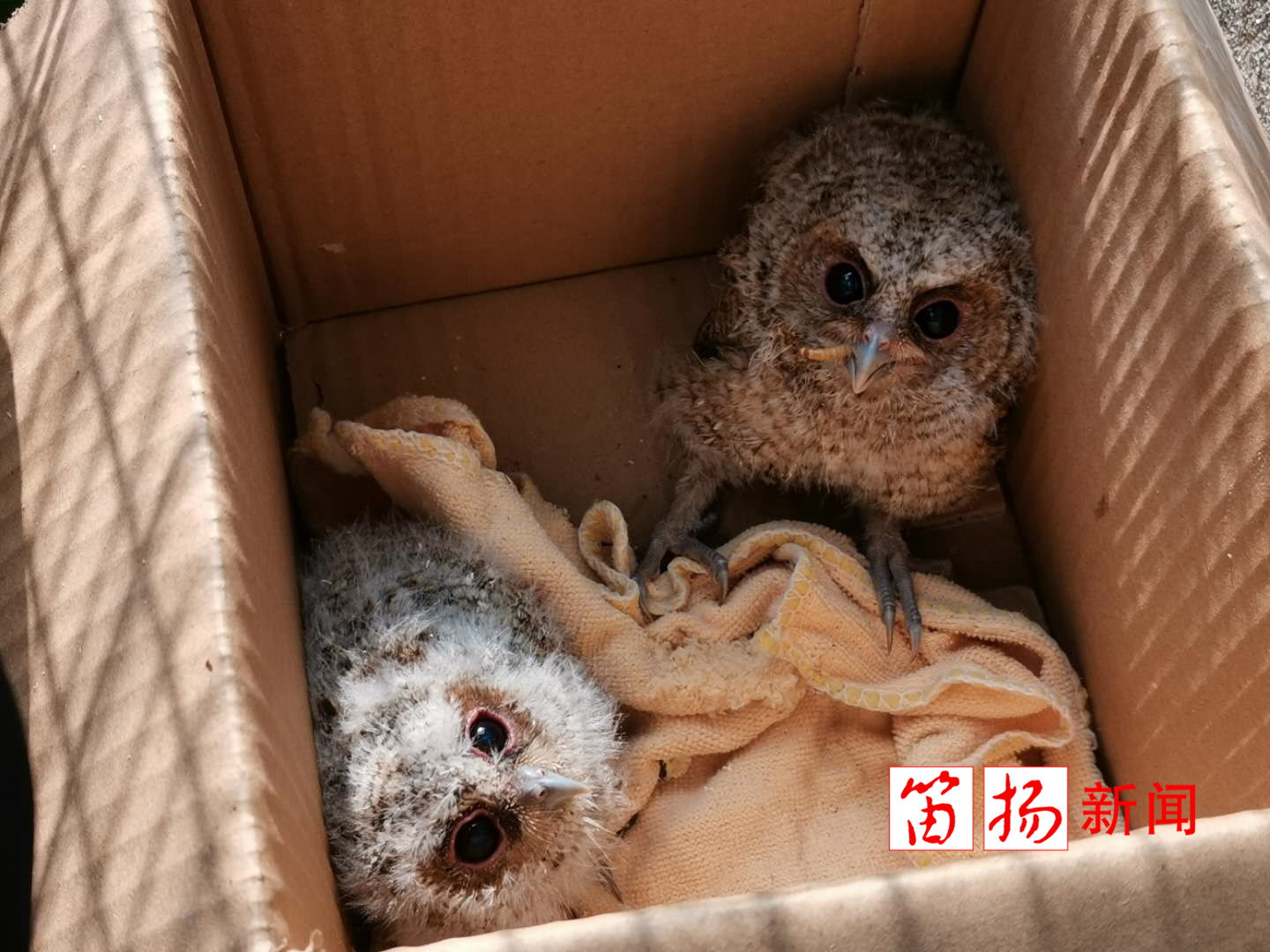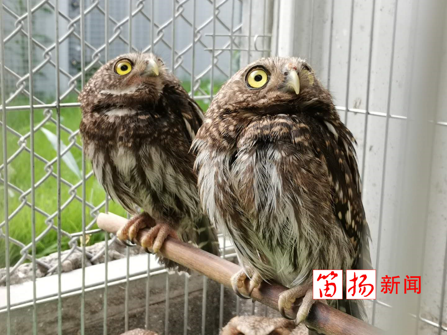 8日傍晚6时许,发生在柯桥水果批发市场旁树林的这一幕,被一位姓王的小伙子看到了。随着王先生的一个报警求助电话,小猫头鹰们被柯桥派出所的警察和柯桥区森林公安民警接力护送到了地处福全街道的柯桥区自然资源局野生动物保护点,这里还有另外9个“小伙伴”,它们中最大的有2个多月,最小的一对还没满月。