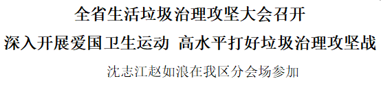 今天上午,省委省政府以视频会议形式召开全省生活垃圾治理攻坚大会。会议强调,要认真贯彻落实习近平总书记重要讲话指示精神,深入开展爱国卫生运动,全面深化生活垃圾领域改革,高水平打好生活垃圾治理攻坚战,奋力推进美丽浙江和“两个高水平”建设,为“重要窗口”建设增光添彩。