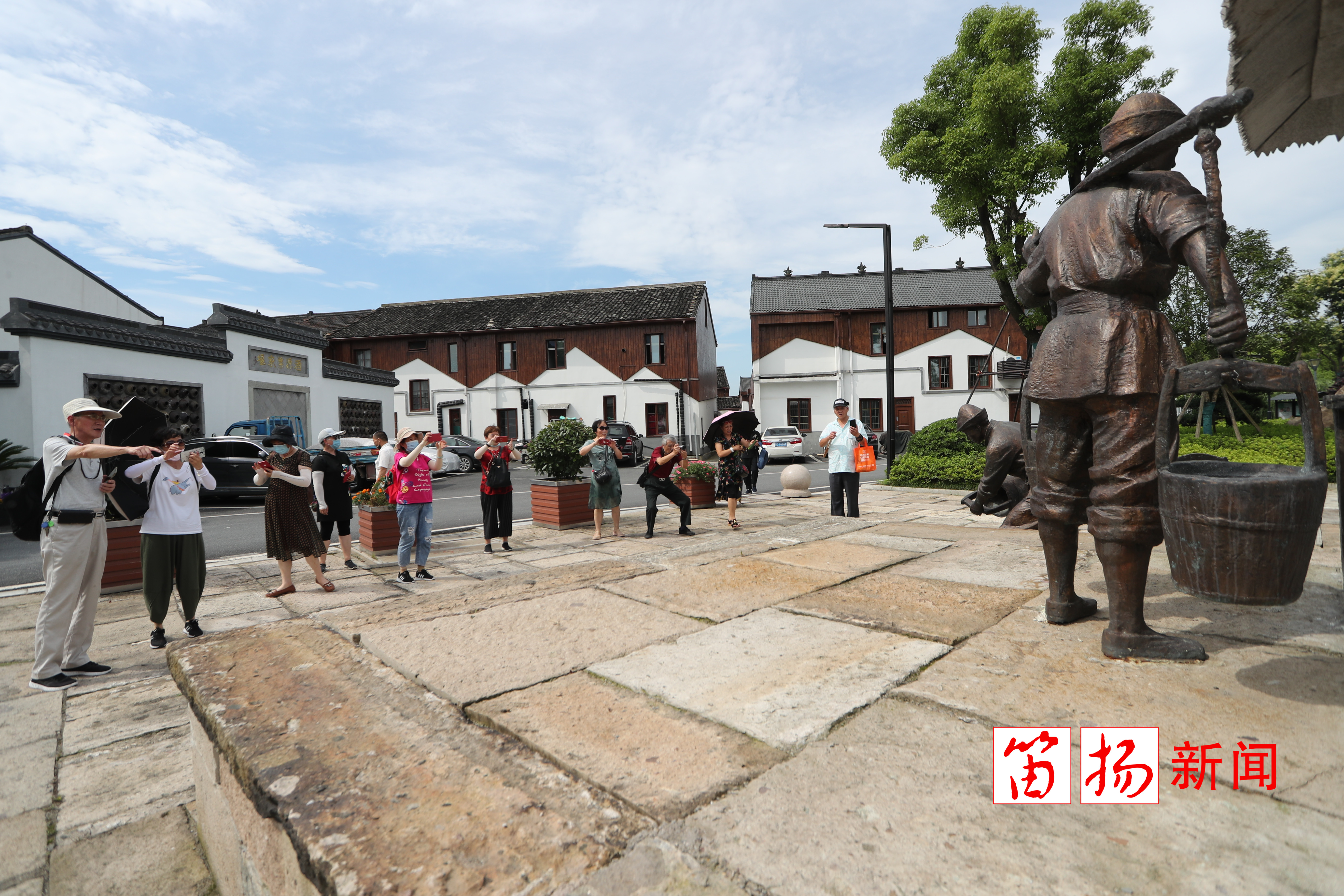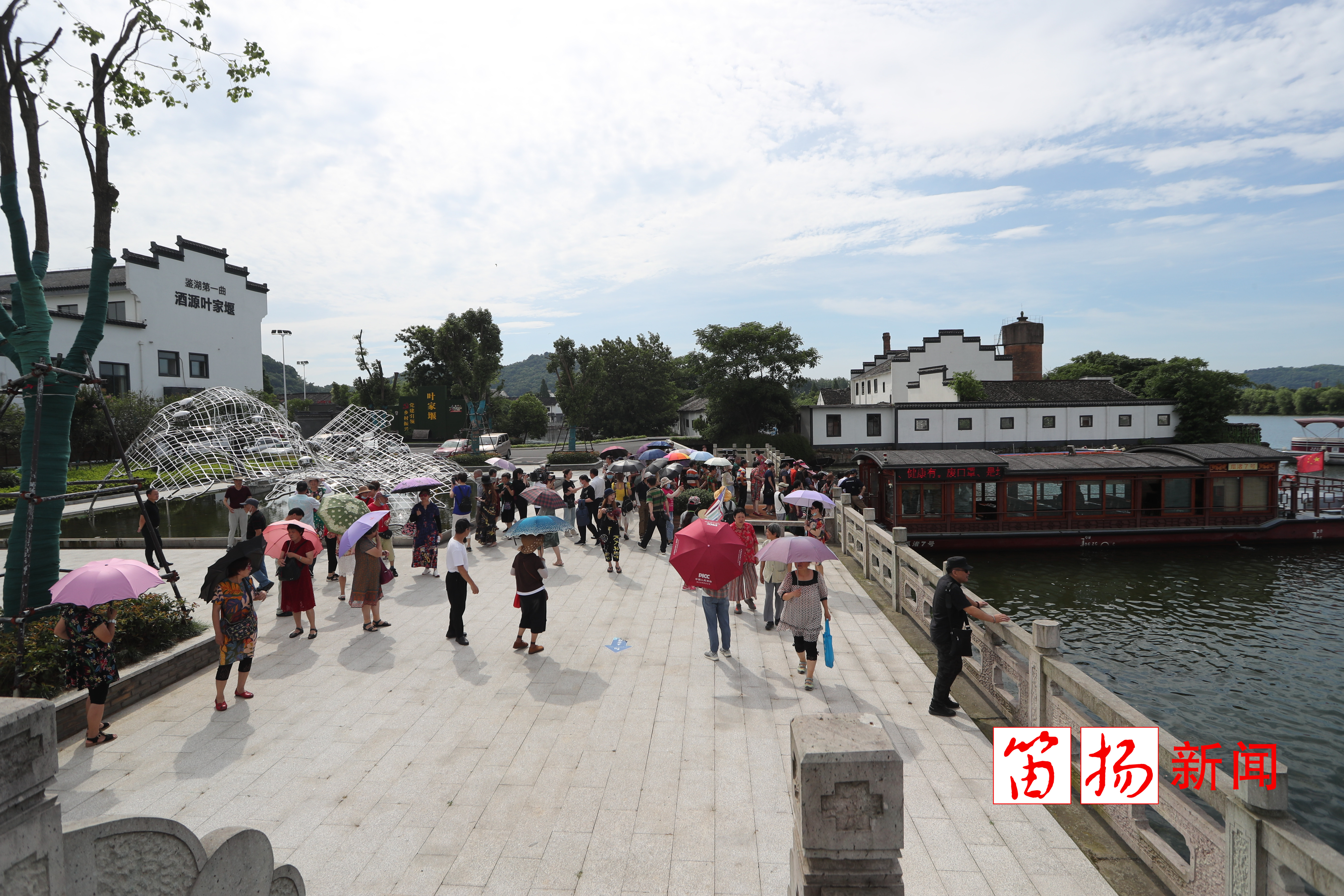 作为“鉴湖渔歌带”上的首个景区化建设示范点,叶家堰居一直以风景优美著称。在旅程中,游客们在导游的带领下穿过白墙黑瓦的整齐屋舍,走过花香萦绕的宽敞村道,欣赏江南味十足的小桥、凉亭和雕塑小品。不少游客为此地的景色所折服,也有人惊叹于叶家堰居只用短短四年就完成了从破旧小村到“网红”村庄的蝶变故事。不少游客还在途中购买了绍兴黄酒、鱼干、虾干等土特产,以及印有江南风情的文化衫,为这趟旅程留下了纪念。