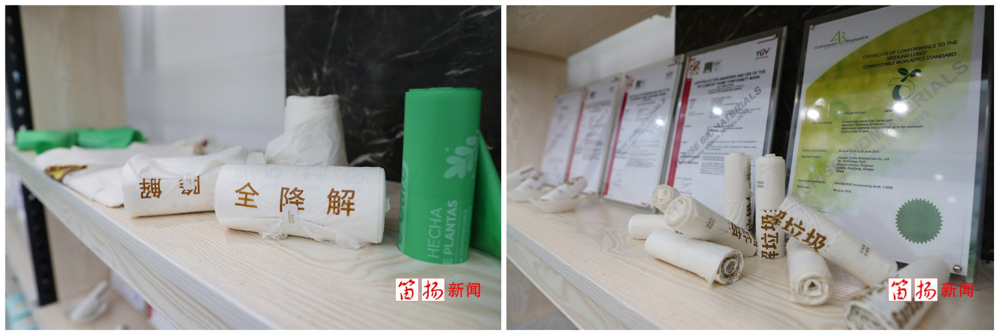 那么,一家纺织外贸公司,为什么做起了可降解塑料产品呢?这还得从2006年说起,当时,一个偶然的机会,公司负责人夏燕红了解到普通塑料袋的自然分解需要200年以上,会造成极大的环境污染,而玉米纤维只需要半年左右就可以百分百降解,十分环保。夏燕红敏锐地嗅到了其中的商机,于是组建研发团队,开始涉足玉米纤维领域。2012年,研发团队成功开发了 “玉米垃圾袋”,虽然这款产品的价格是普通塑料袋的近三倍,但依然受到了德国、法国、意大利等海外客户的热捧。“现在很多国家非常重视环保,已经开始禁止国民使用普通垃圾袋,所以这种可降解的垃圾袋市场非常广阔。” 夏燕红说。