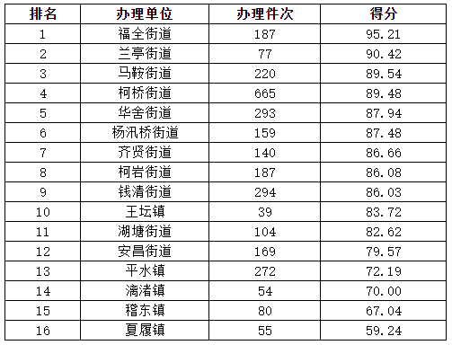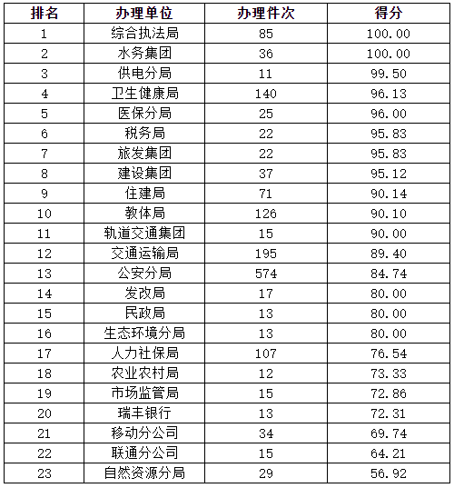 注:当月办理量低于10件的部门(单位),只作月度测评,不纳入当月向社会公布内容,但纳入年度考评。