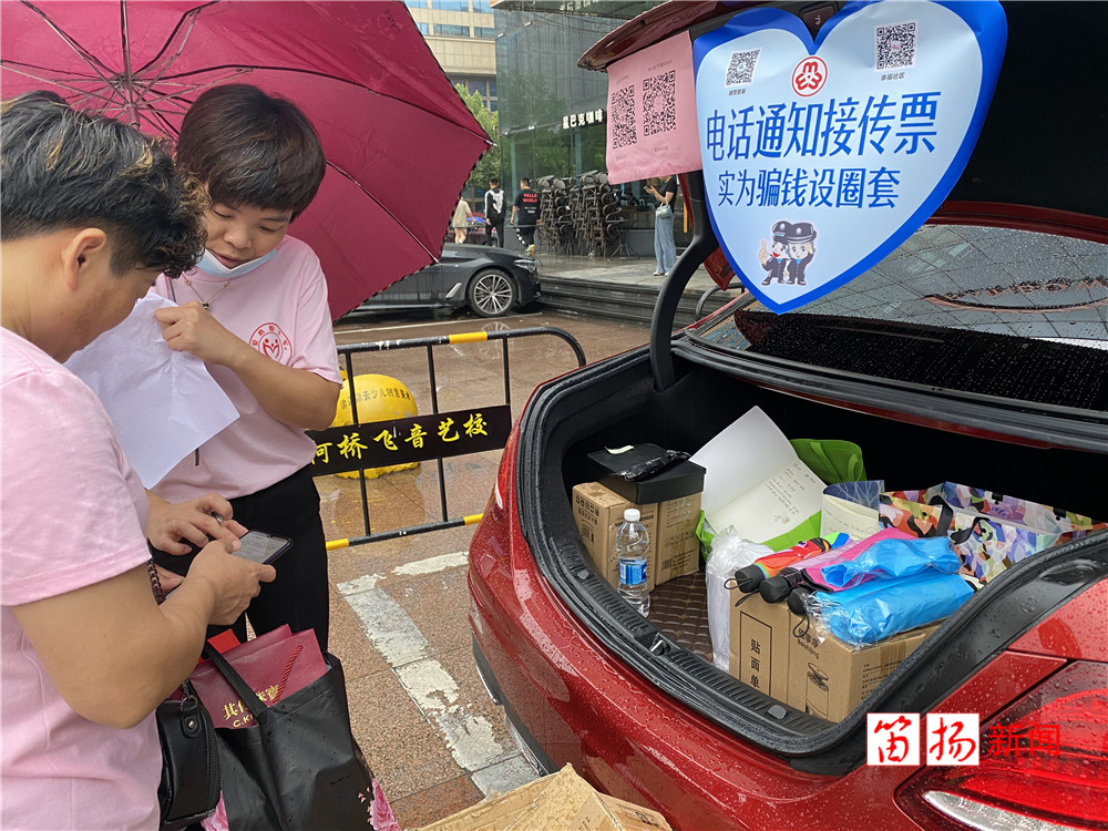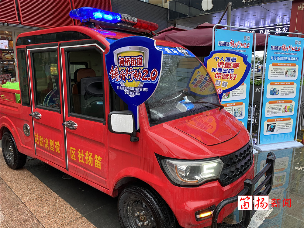 同时,柯桥街道笛扬社区工作人员在现场分发反诈骗知晓单、循环播放反诈骗宣传语,加强反电信网络诈骗宣传,全力营造商场、商户、消费者共同反诈防诈的浓厚氛围。