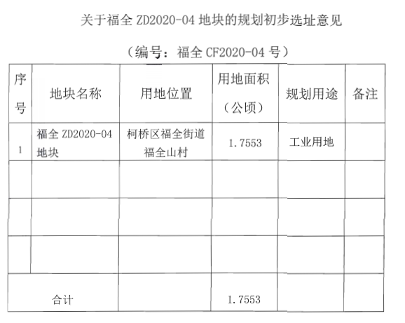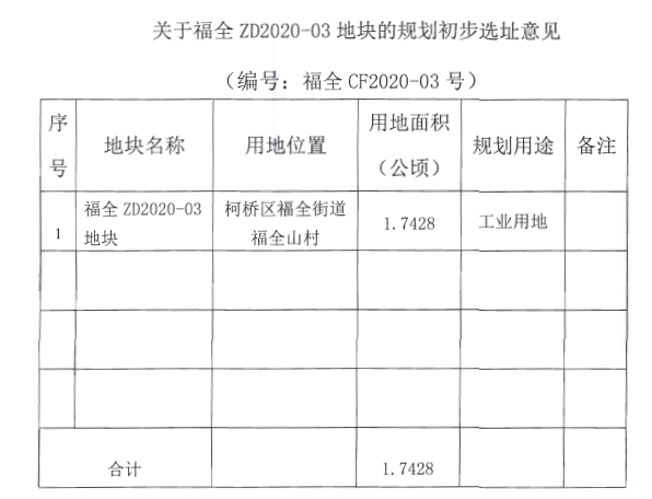征收范围:柯桥区福全街道全山村,东至福全山工业用地、西至福全山工业用地、南至福全山工业用地、北至田。拟征收柯桥区福全街道全山村农村集体所有土地1.7428公顷(26.142亩)。