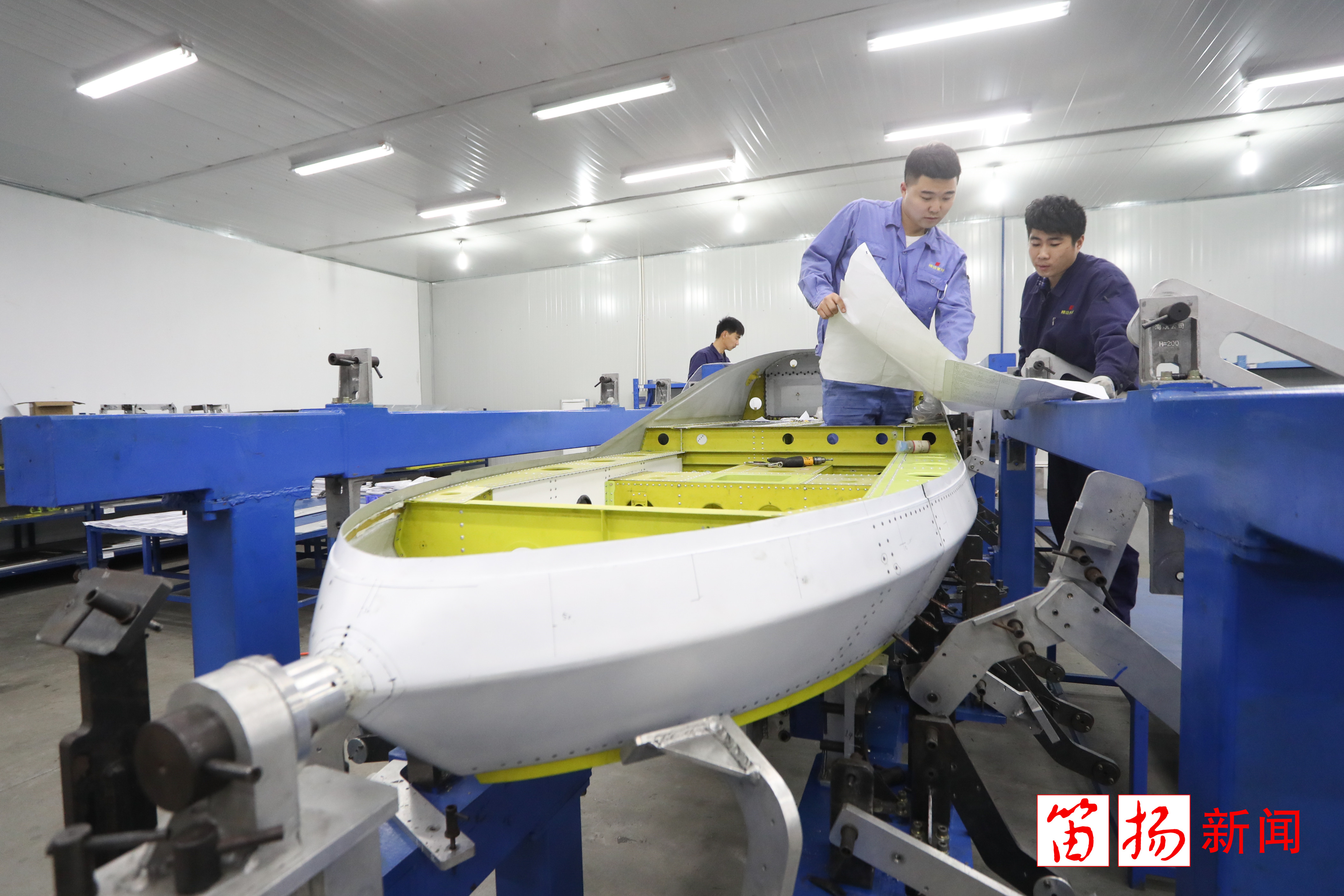 在精功碳纤维及复合材料产业基地装配车间,工人正在组装含有碳纤维材料的无人机。全媒体记者 赵炜 摄