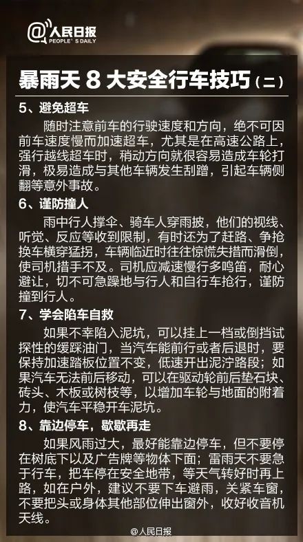 3.驾驶人员应当注意道路积水和交通阻塞,确保安全;
