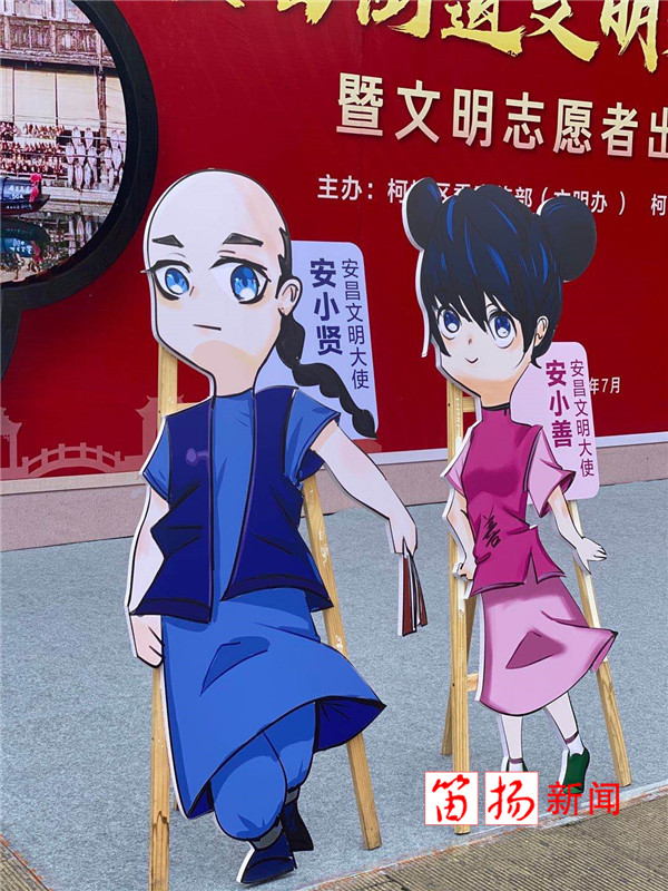 “以四个可爱的卡通形象作为文明大使,去引领社会各层面,全民参与到文明城市的创建中来,一同用‘创城’这支画笔,描绘着文明安昌、文明柯桥的美丽画卷。”安昌街道相关负责人说。