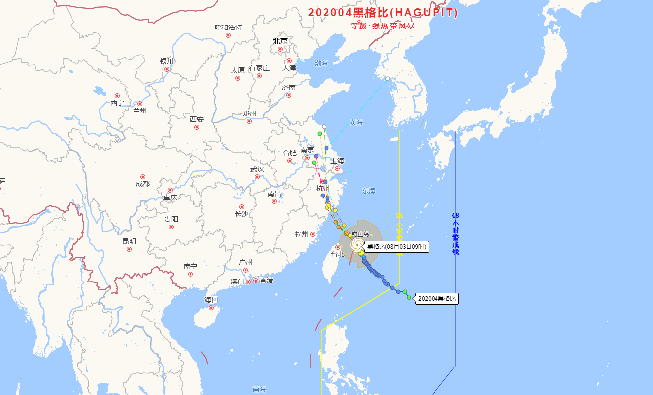 据中央气象台消息,台风“黑格比”是今年来登陆我国沿海的第二个台风,登陆后,“黑格比”强度逐渐减弱,先后穿过浙江、江苏,将于5日白天从江苏北部移入黄海西部,以后转向东北方向移动。
