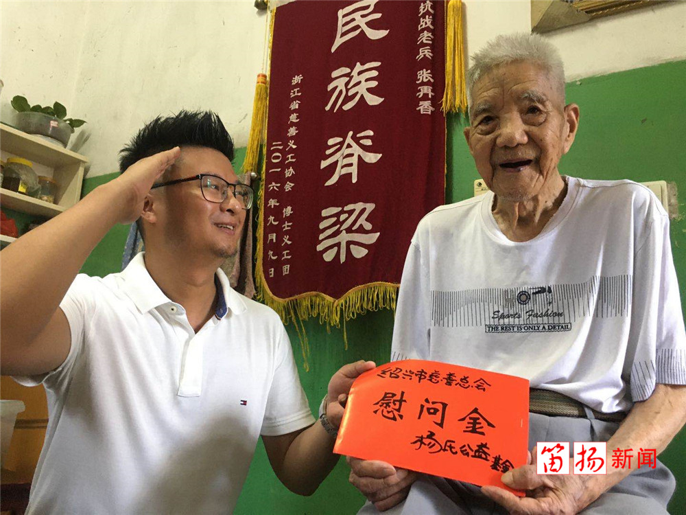 就这样,7月30日到31日,杨铭和这支爱心队辗转600多公里,相继赶赴柯桥、诸暨、嵊州、新昌,一共慰问了一共21位抗战老兵,送上共计3.15万元爱心慰问金。“总觉得有很多事,现在不做,可能就永远来不及了。”杨铭说,抗战老兵为民族独立和解放出生入死、浴血奋战,做出了巨大的贡献。作为后辈,就要铭记历史、感恩先辈,为抗战老兵的晚年添一份力所能及的温暖。