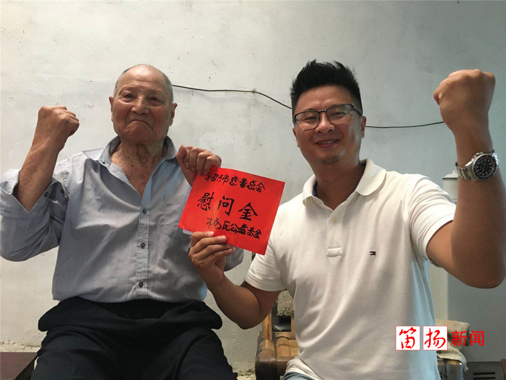 这是绍兴80后爱心人士杨铭在市慈善总会的牵线搭桥下,第二次用自己的杨氏公益基金看望绍兴山区老兵了。去年,他就给20位九旬老兵带去了共计3万元的爱心礼包。“一年过去了,当我想再次看望这批年迈老兵时,发现去年看望过的老兵中,已有七位相继离世。”杨铭说,今年7月底,又重新整理好全市范围内21位生活困难的九旬老兵名单,备好爱心慰问金,还得到了绍兴市炉峰慈联康乃馨服务队爱心接力,特意为老兵们提供50斤米、10斤油。