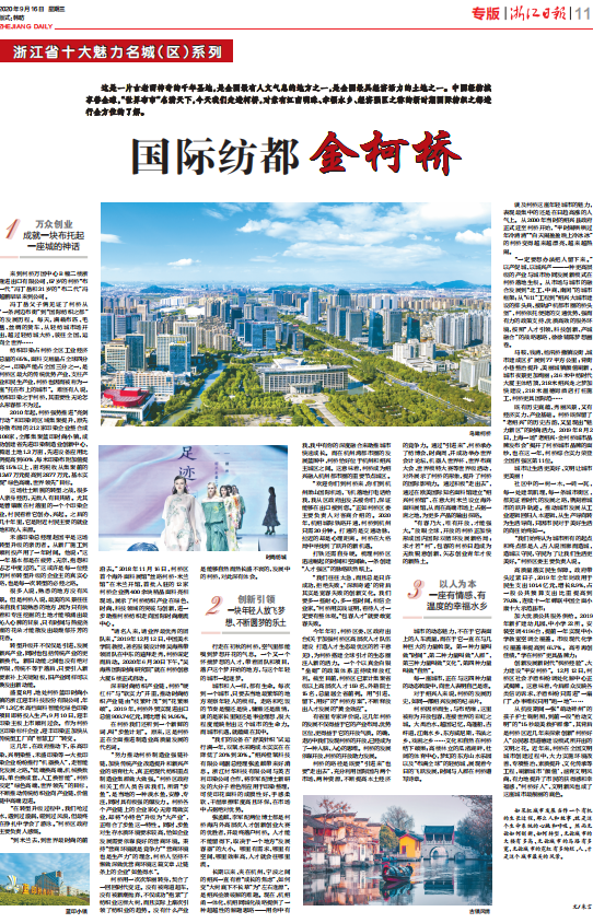 今天,《浙江日报》浙江省十大魅力名城(区)系列栏目,用一个整版对柯桥这一素有江南明珠、幸福水乡、经济强区之称的新时期国际纺织之都进行全方位的报道,让大家深度领略这座城市的魅力。