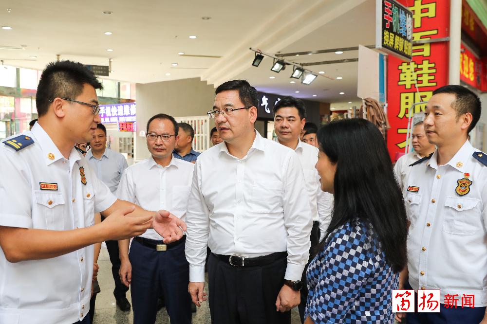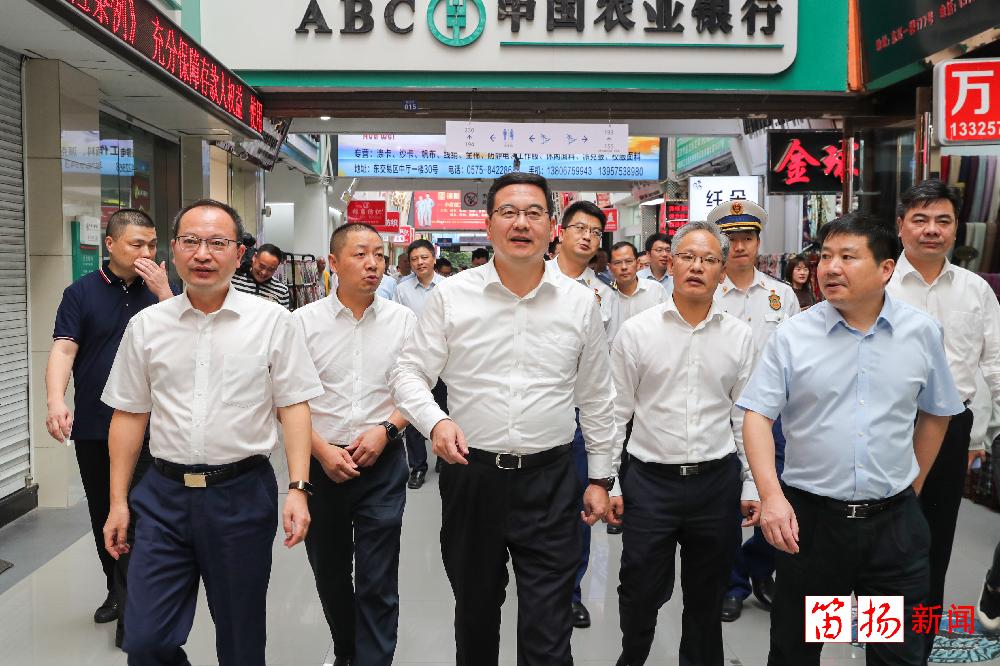 盛阅春到中国轻纺城东市场交易区实地检查。赵炜 摄
