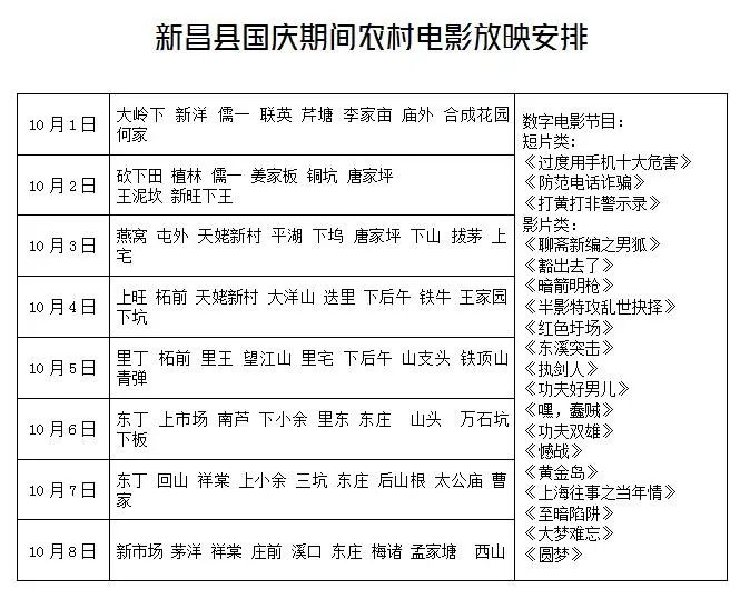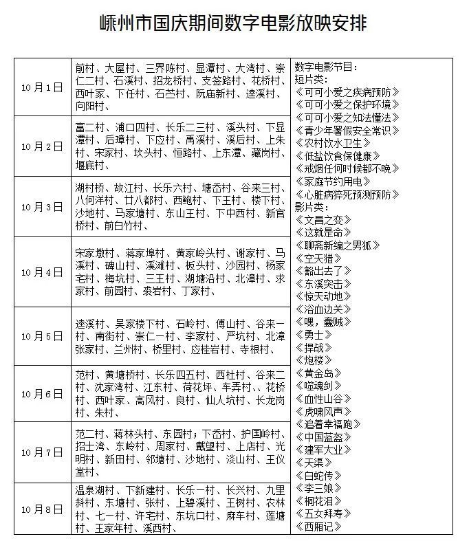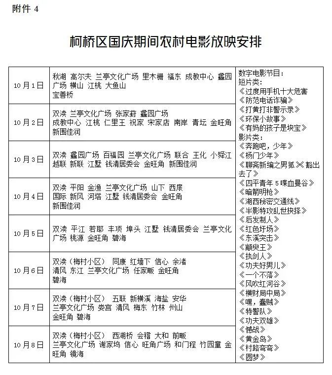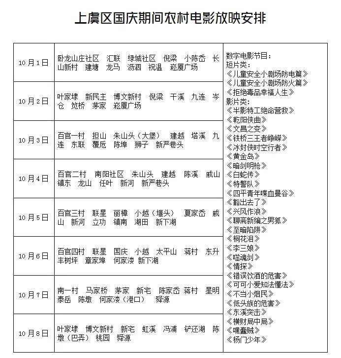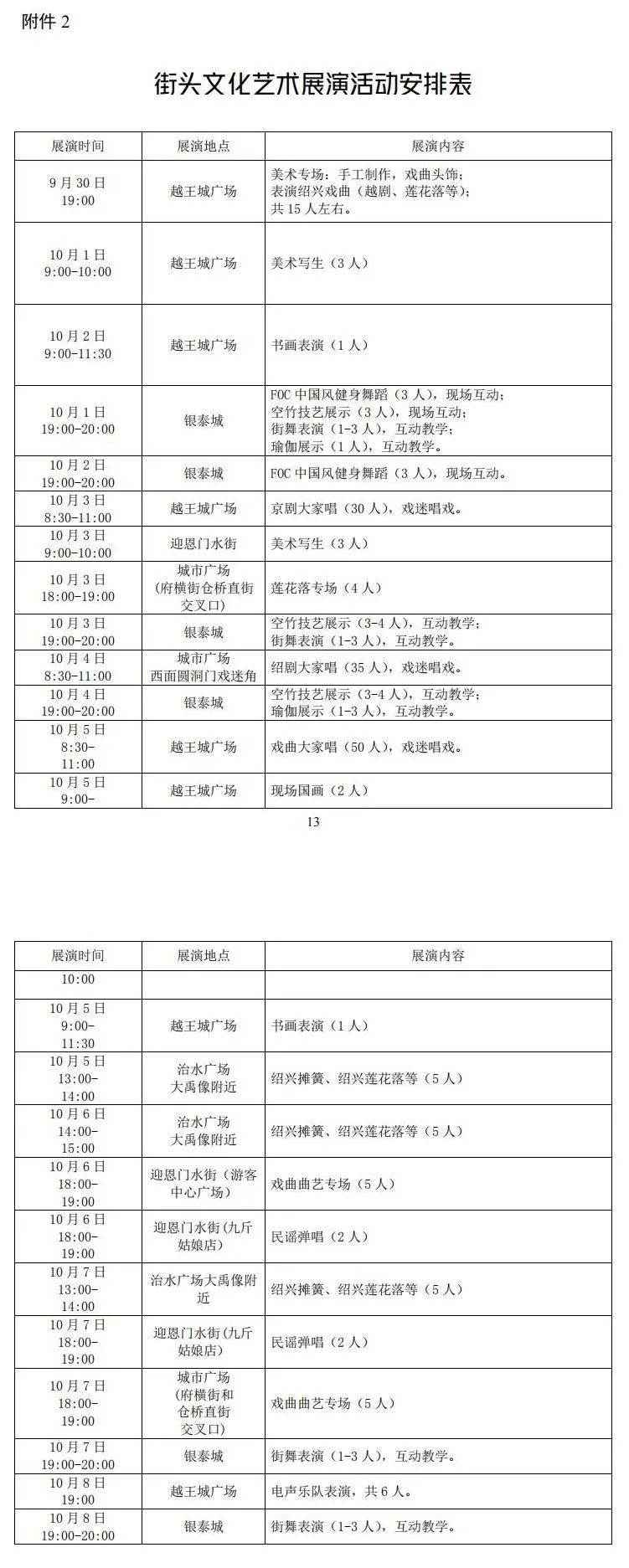 据初步统计,将举行戏剧和文艺演出等202场、街头艺术活动24场、主题文艺展览16场、公映优秀国产影片6部、农村公益电影1350场、40余个农村文化礼堂安排国庆文艺演出。