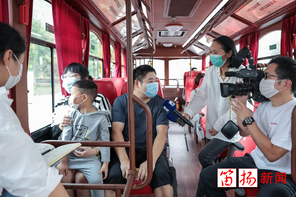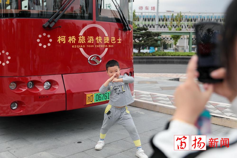 家住柯岩街道新未庄小区的王瑜一家三口在家门口坐上了这辆颜值颇高的旅游巴士,超大的空间、复古的内饰一下就吸引了5岁儿子小宝的眼光。王瑜告诉记者,前几天,儿子在路上偶遇这辆巴士后,就一直惦记着坐一回,刚好小区门口设有停靠站,于是就特地带着孩子来感受一下。